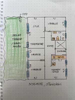 dejlig stor bolig på 126 m2 med 3 soveværelser og stor stue.