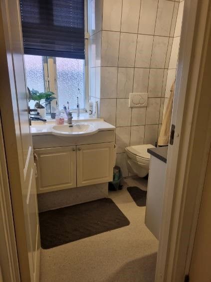 En 2 vær. lejelighed på 1. sal med dejlig stor stue. Der er bryggers i lejemålet til vaskemaskine/tørretumbler og til diverse opbevaring. Forbrug er eksl i huslejen