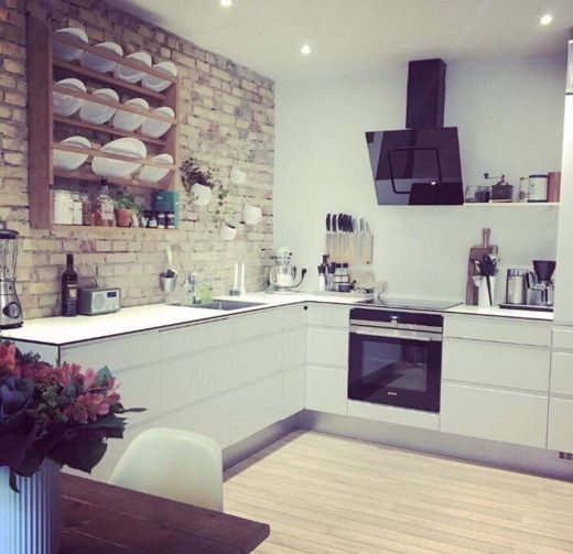 I køkkenet er der masser af både bordplads og skabsplads, og lejligheden indeholder følgende hårde hvidevarer: