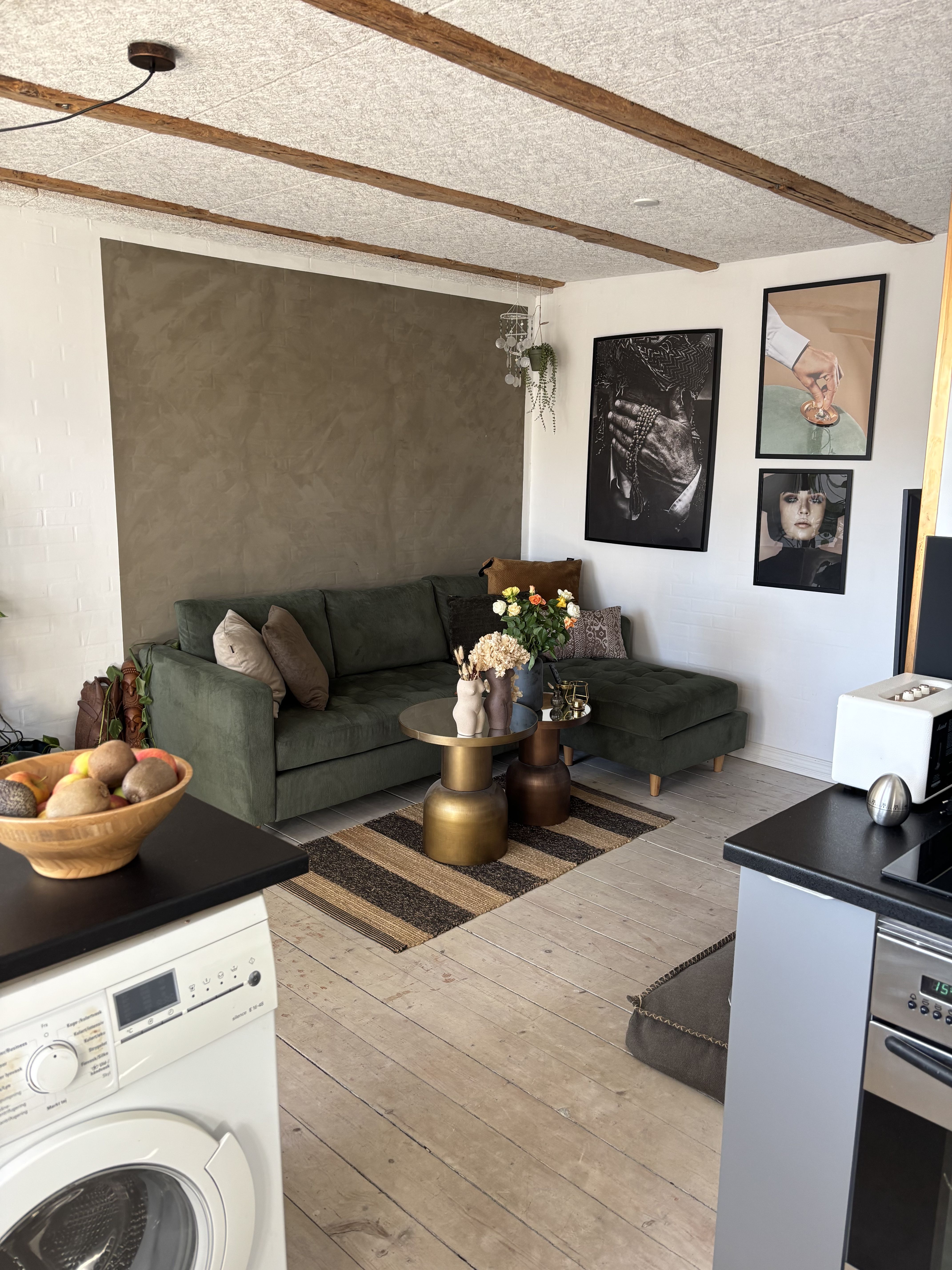 Der er pæne trægulve i hele lejligheden, som giver et moderne og varmt udtryk.