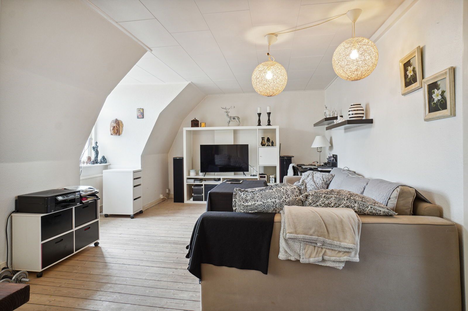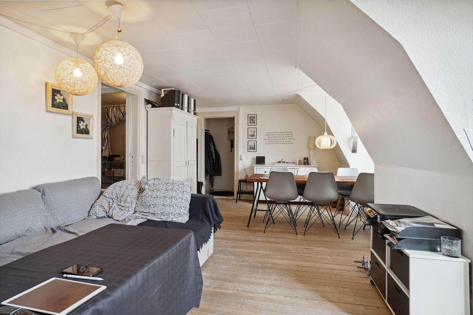 Lejligheden er lys og indbydende med: