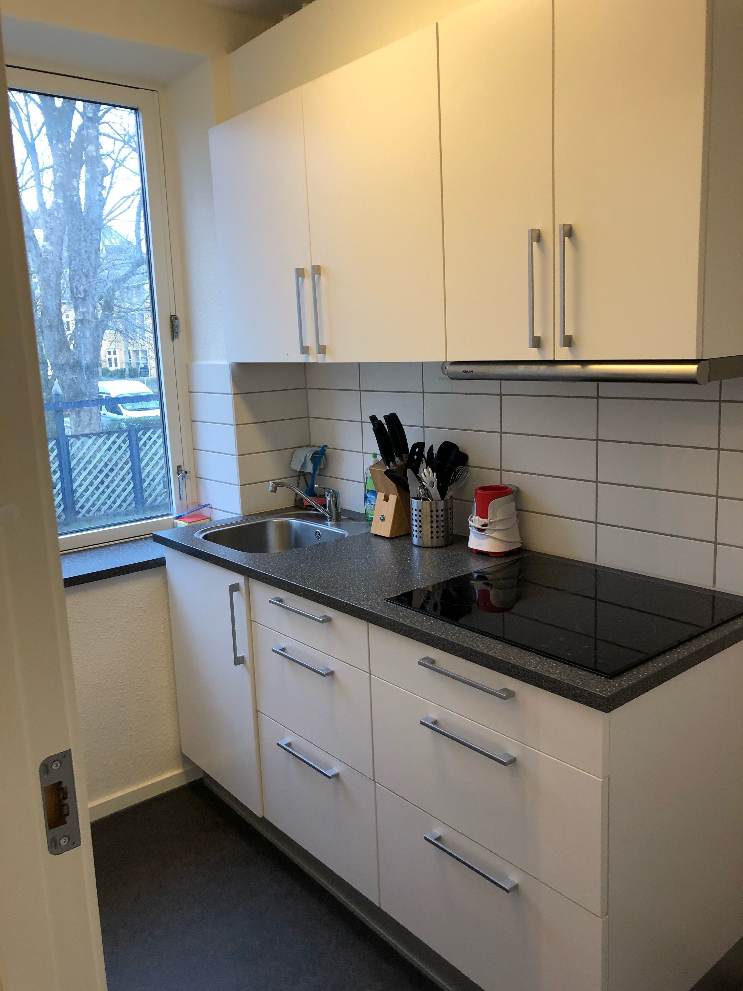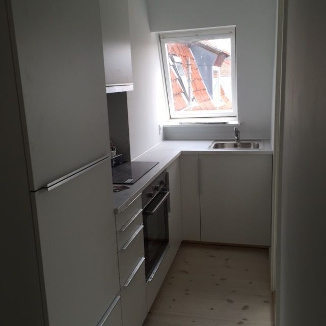 Lejligheden er indrettet med en lille entre med adgang til en rigtig stor stue. Herudover indeholder lejligheden et stort rummeligt soveværelse samt et køkken som er godt udnyttet, og hvor der er god bordplads. I køkkenet er der installeret:
