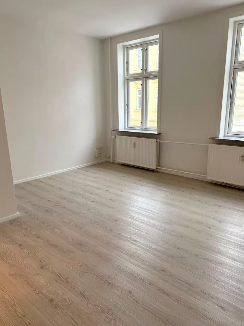 Velkommen til en indflytningsklar 2-værelses lejlighed på 51 m2 i attraktive Vestbyen. Boligen er nyrenoveret fra ende til anden og fremstår lys, enkel og let at indrette. De nylagte vinylgulve i træ-look går igen i hele lejligheden og giver et ensartet, varmt udtryk.
