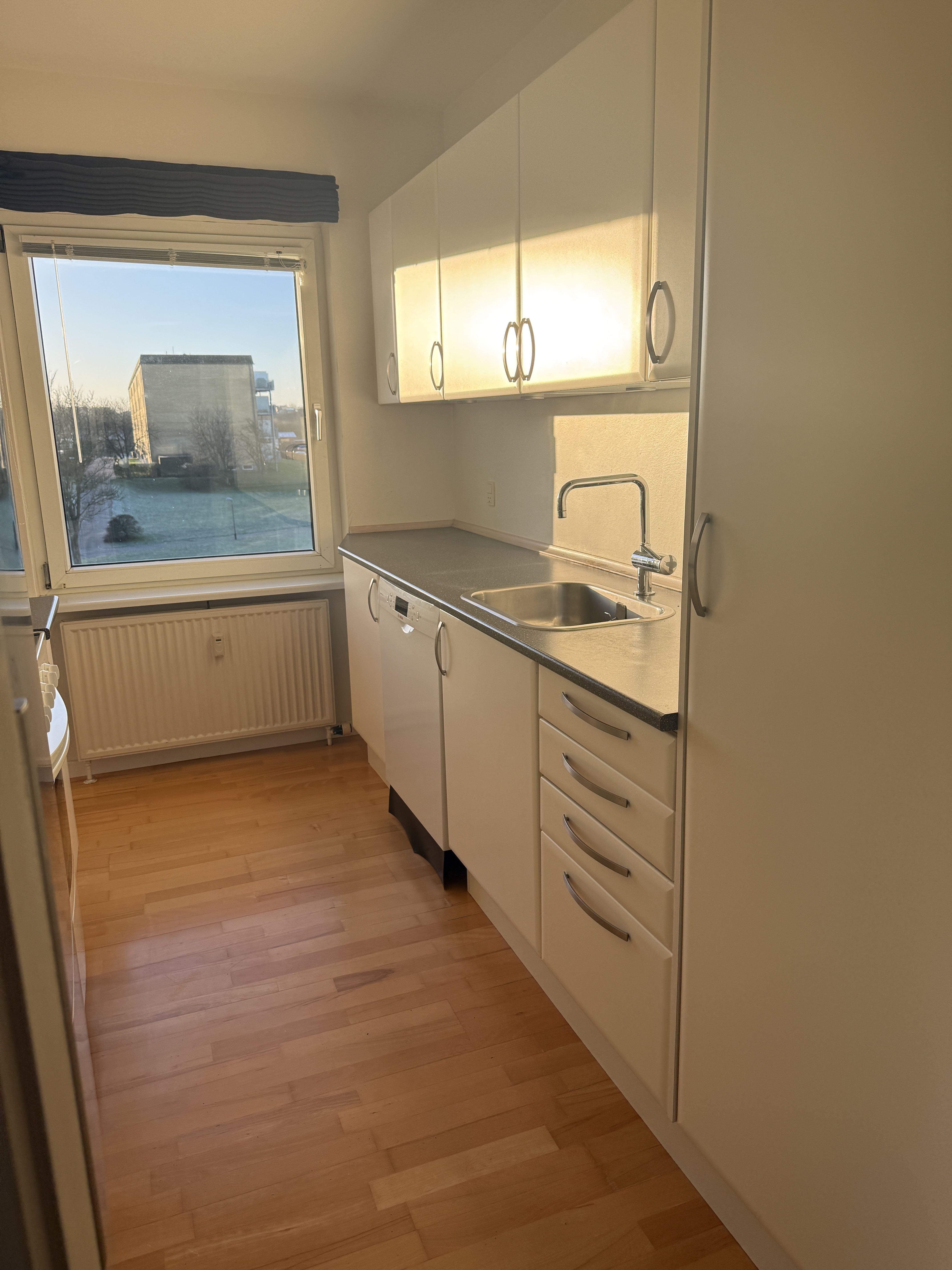 Åhuset er 160 moderne og attraktive lejligheder, der er nyopført i november 2022, på Godsbanen i Aalborg. Alle 160 lejligheder er udlejet, men denne er blevet ledig og med mulighed for overtagelse fra 01.04.2026. Fakta for denne bolig: - 2-værelses lejlighed - 53 kvm - Arkitekttegnet bolig opført i kvalitetsmaterialer - Vestvendt altan - Fuld hårde hvidevarer-pakke: opvaskemaskine, tørretumbler, vaskemaskine mv. - Lejligheden er udstyret med gardiner - Elevator i opgangen - Eget depotrum i kælderen - Husdyr tilladt (men op til max 5 kg) - Cykelparkering i stueplan - Stor fælles terrasse og grønne udearealer - Kort afstand til Aalborg Centrum - Offentlig transport lige udenfor døren - Gode indkøbsmuligheder inden for gå-afstand Bemærk: Der opkræves 3x husleje i depositum + 1x husleje i forudbetalt leje + første måneds leje i indflytningspris. Billederne er ikke fra den faktiske lejlighed, men fra en tilsvarende møbleret demobolig. Plantegning er fra den pågældende bolig.
