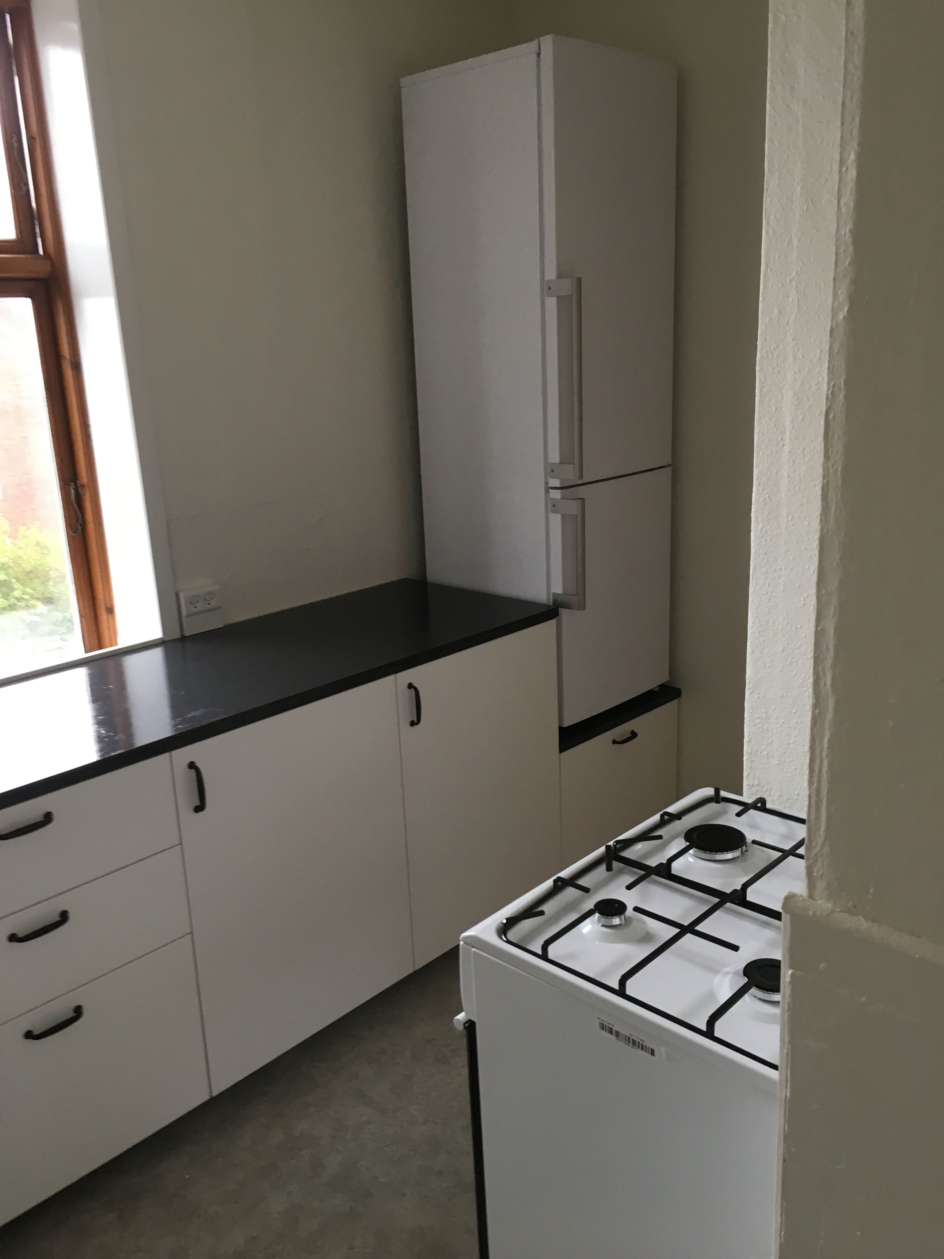 Lejligheden har et dejligt nyere køkken, badeværelse med separat brus, en