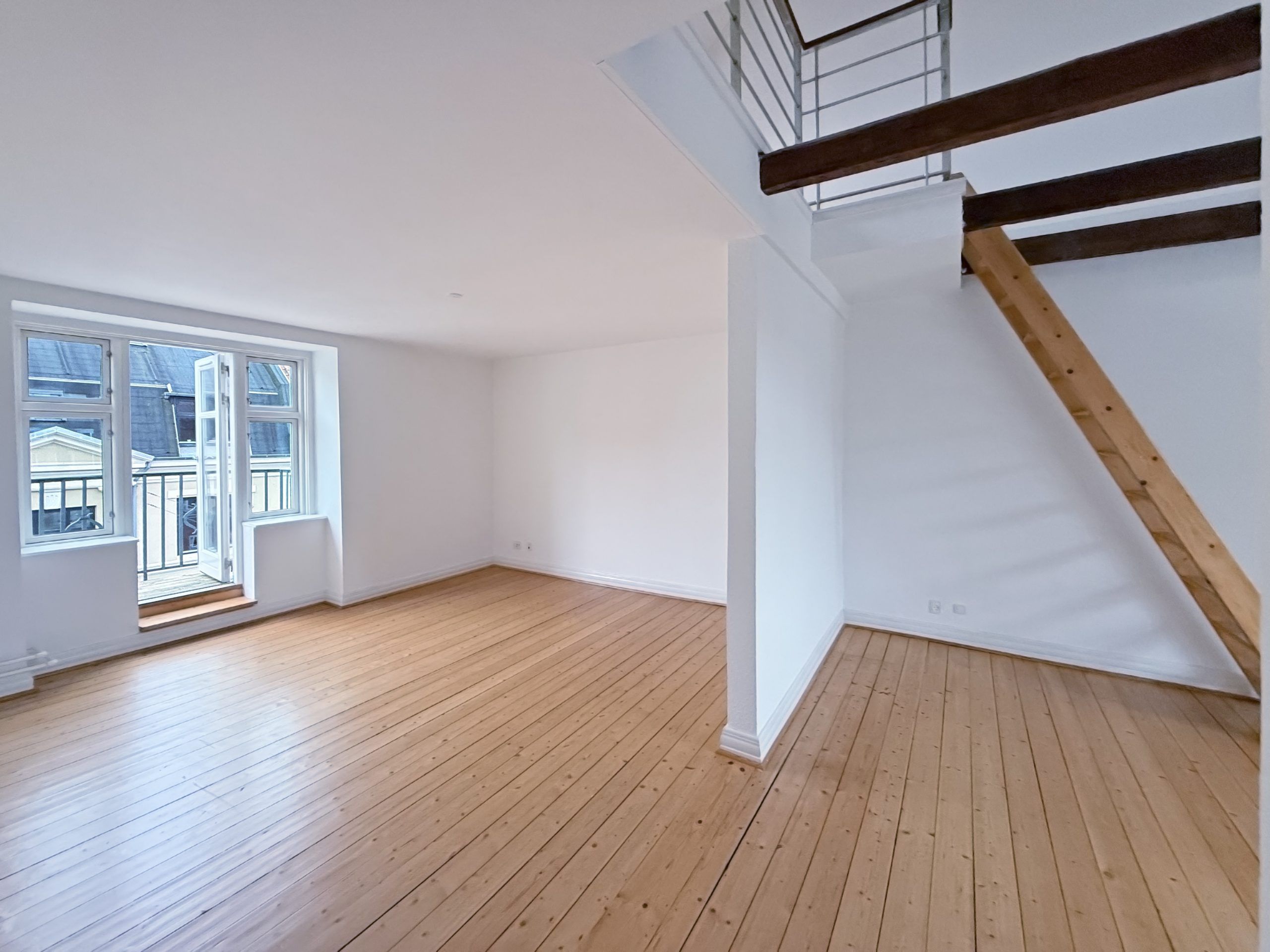 Lejligheden ligger øverst oppe på tredje sal, og det har sine fordele. Du har ingen naboer over dig, og solen skinner frit på din altan hele dagen! 😍☀️ Altanen er rummelig og ikke bare til pynt.
