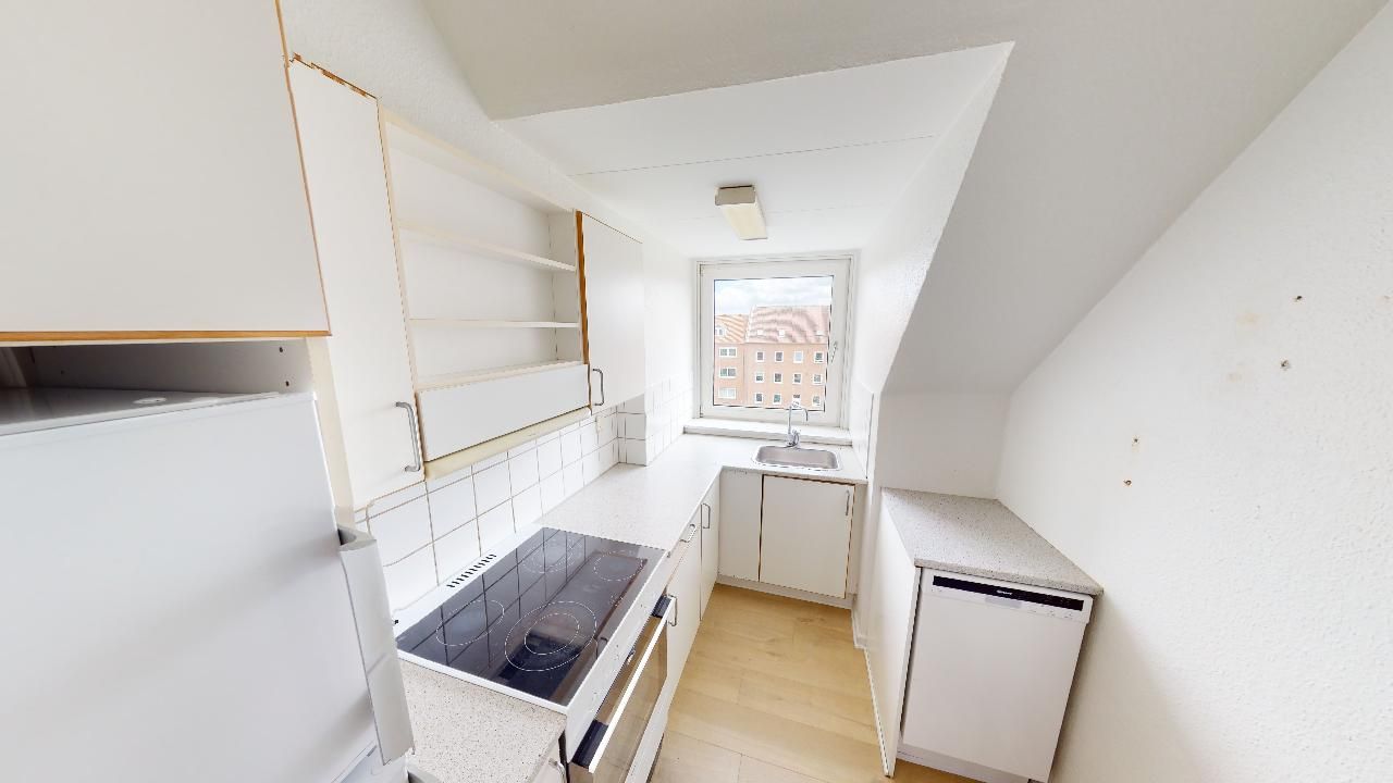Velkommen til denne hyggelige 3-værelses loftslejlighed på 4. sal, perfekt beliggende midt i Aalborg Centrum! Med kun få skridt til byens puls og samtidig tilbagetrukket fra den værste støj, får du det bedste fra to verdener.