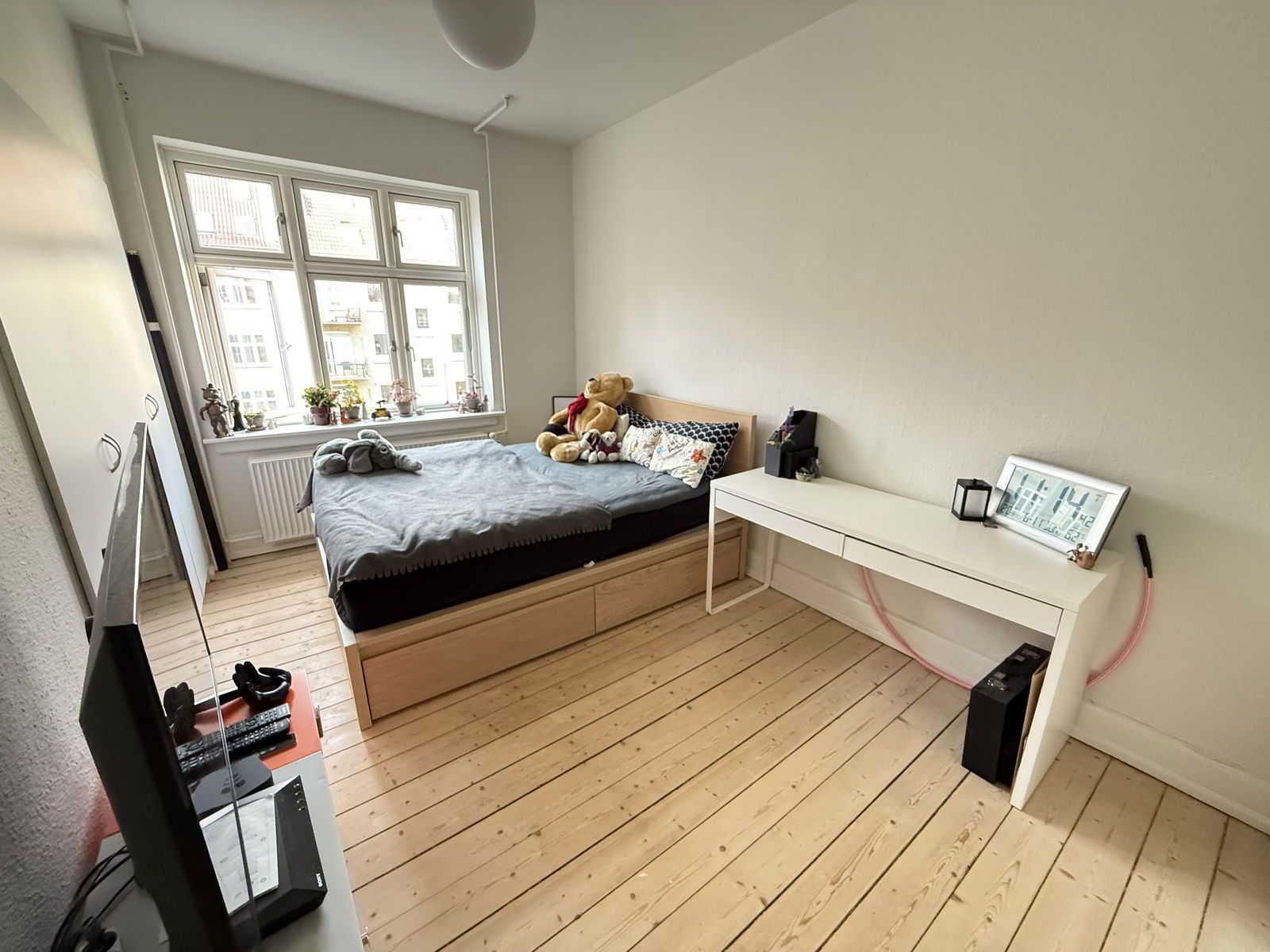 Plads og Indretning: Lejligheden byder på 60 m² veludnyttet plads samt en attraktiv 8 m² hems, der skaber et anvendeligt ekstra rum til opbevaring eller kontor. Lejligheden har tre værelser i alt og fremstår med rummelige værelser i fornuftige størrelser.