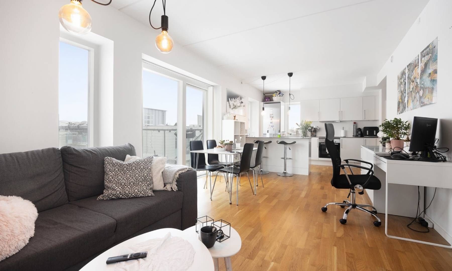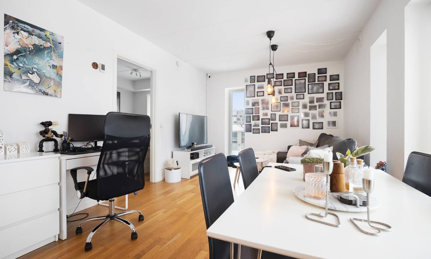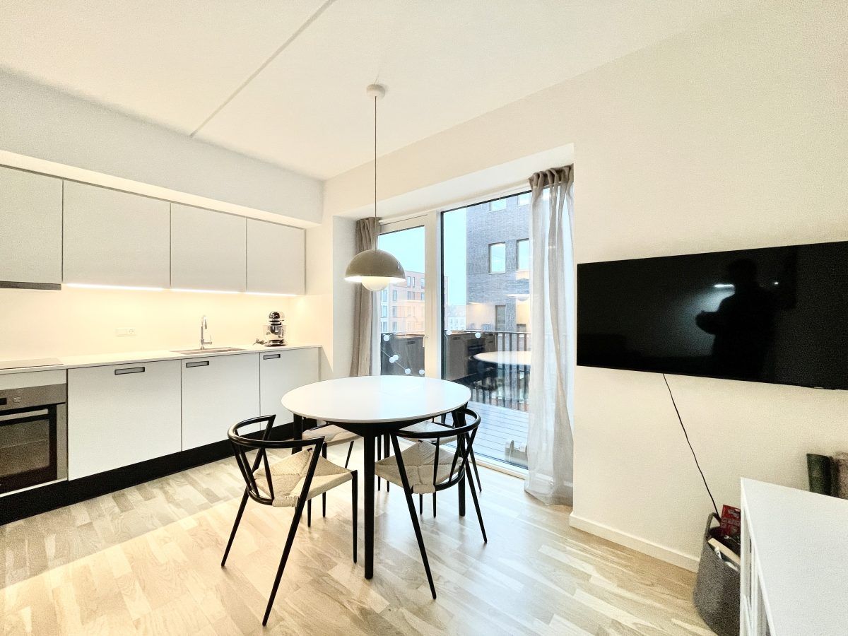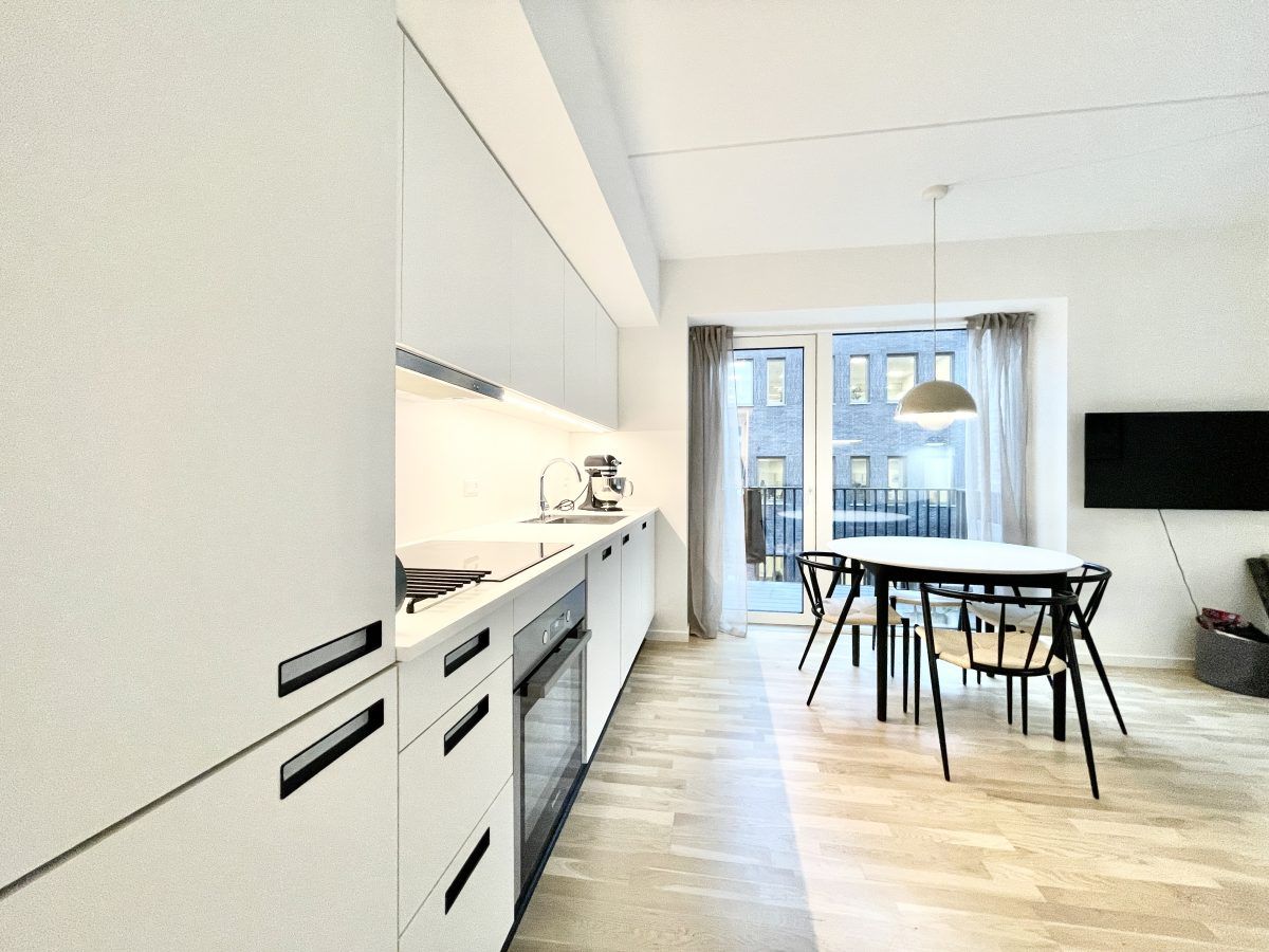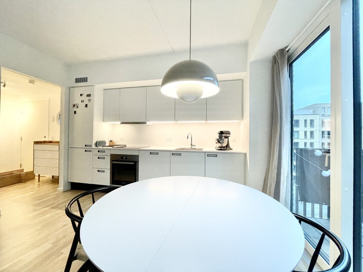 Lys totalmoderniseret 2V på 62 m2 med altan, separat køkken og opvaskemaskine Velkommen til en indflytningsklar 2-værelses lejlighed på 62 m2 med en funktionel planløsning og lyse materialer. Lejligheden byder på en rolig altan mod gårdmiljøet, moderne køkken med opvaskemaskine og et pænt badeværelse – ideel til både enlig og par, der ønsker en nem hverdag i velholdte rammer. Du træder ind i en entré med plads til overtøj og sko samt dørtelefon. Herfra er der adgang til et rummeligt opholdsrum med brede vinduespartier, der lader lyset strømme ind og giver god plads til både sofahjørne og spiseplads. Køkkenet er separat og indrettet i en tidløs, hvid stil med mørk bordplade, god skabsplads og vindue over vasken. Her er integreret opvaskemaskine, indbygningsovn og kogeplade – praktisk og velfungerende i dagligdagen. Soveværelset er lyst og indretningsvenligt med garderobeskab, som giver fin opbevaringsplads. Fra boligen er der udgang til altanen, hvor du kan nyde dagens lys og et kig til gården i rolige omgivelser. Badeværelset fremstår moderne med lyse vægfliser i bruseområdet, mørke gulvklinker, stor spejlflade, underskab med opbevaring og vindue for naturligt lys og effektiv udluftning. Materialerne er valgt i en enkel og moderne stil med gennemgående, lyse gulve og hvide vægge, der gør det let at indrette personligt. Den behagelige loftshøjde giver en luftig rumfornemmelse, og boligen opleves veldisponeret med klare funktioner i hvert rum. Lyder det som noget for dig? Kontakt os for en fremvisning.