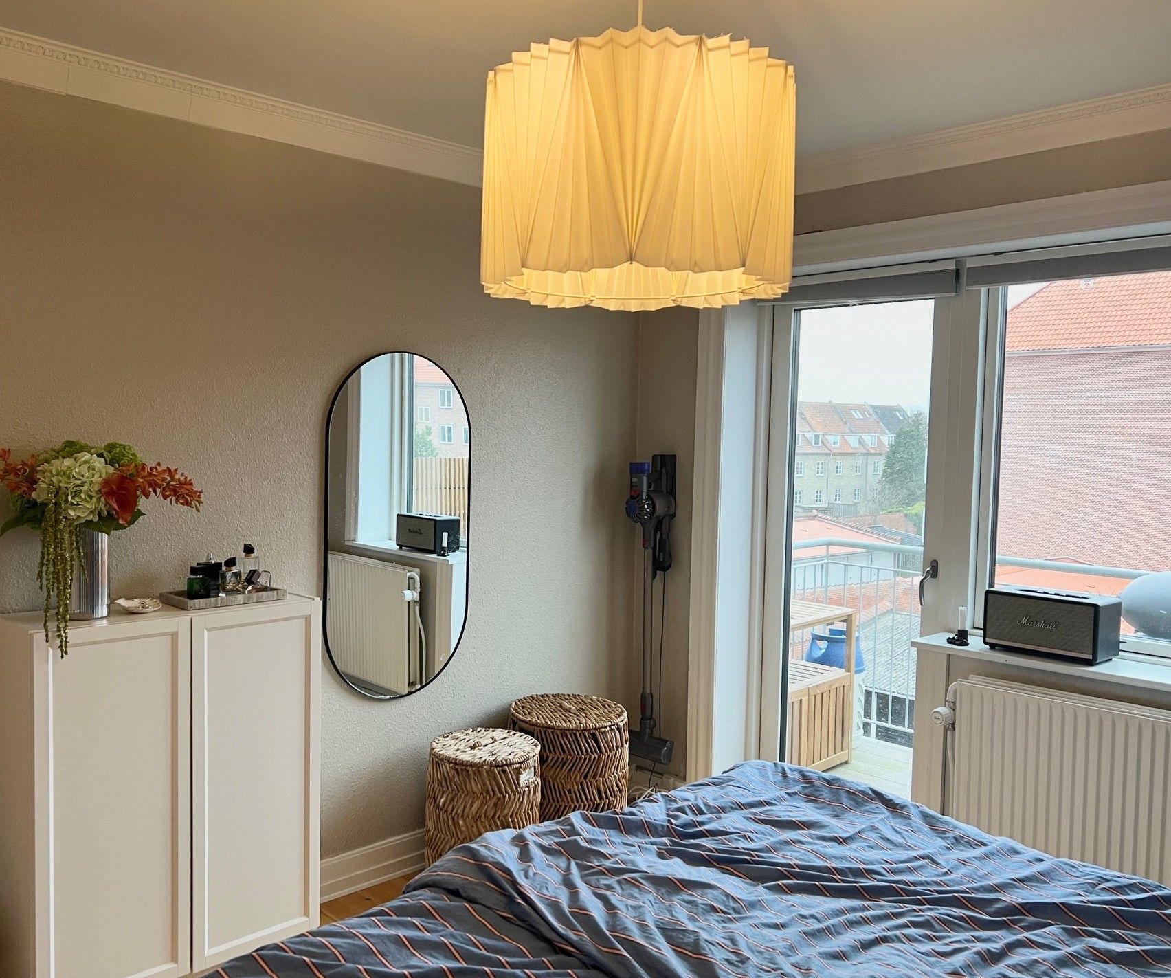 - Badeværelse med lyse fliser, samt soveværelse og stue.