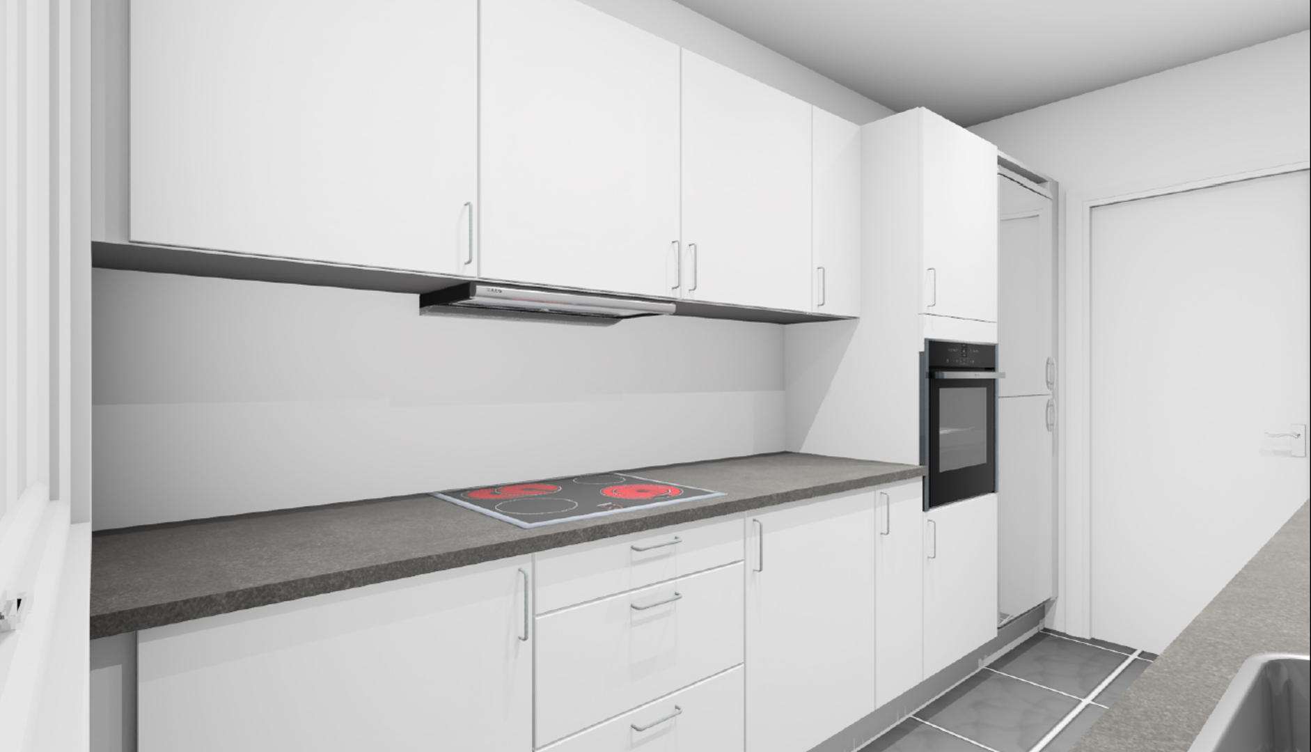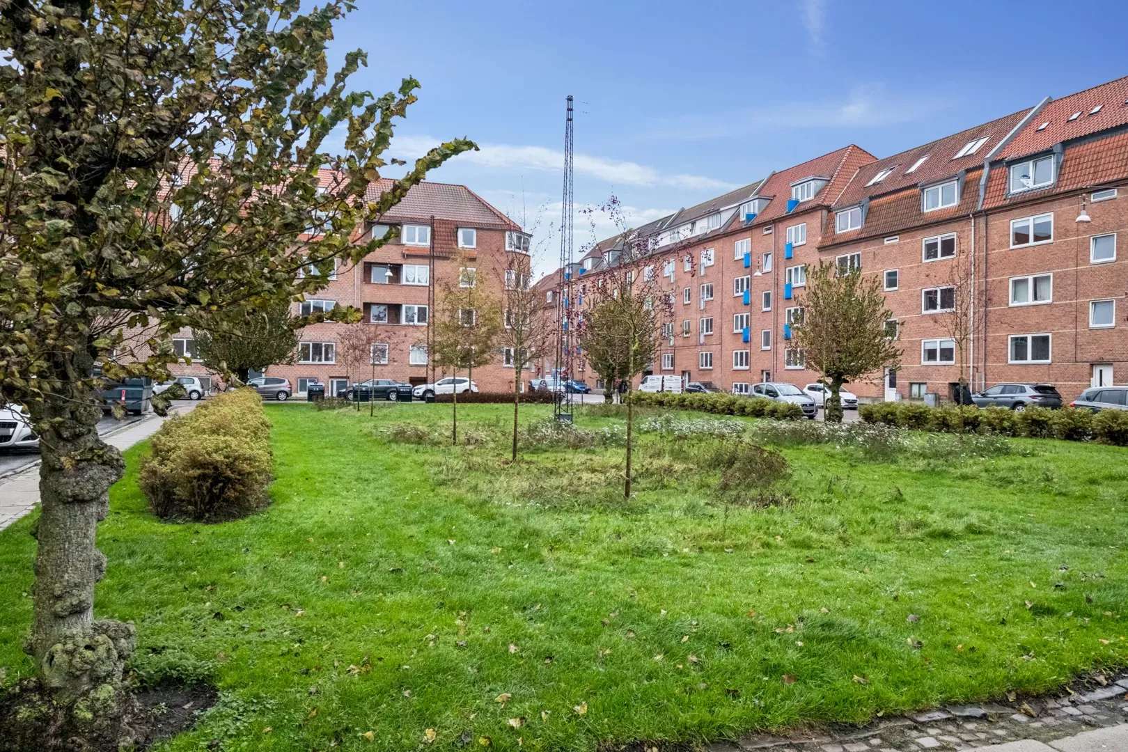 Lille entre med adgang til toilet og bruseniche, nyere køkken med lille opvaskemaskine, komfur og køleskab. Desuden et lille viktualierum, med lille kummefryser.Stort værelse og stor stue. Lille loftsrum. Kælderrum, cykelkælder og fælles vaskemaskine. Centralt beliggende i Vejgaard. Gode busforbindelser, tæt på indkøbsmuligheder og cykelsti lige ud til Universitetet.