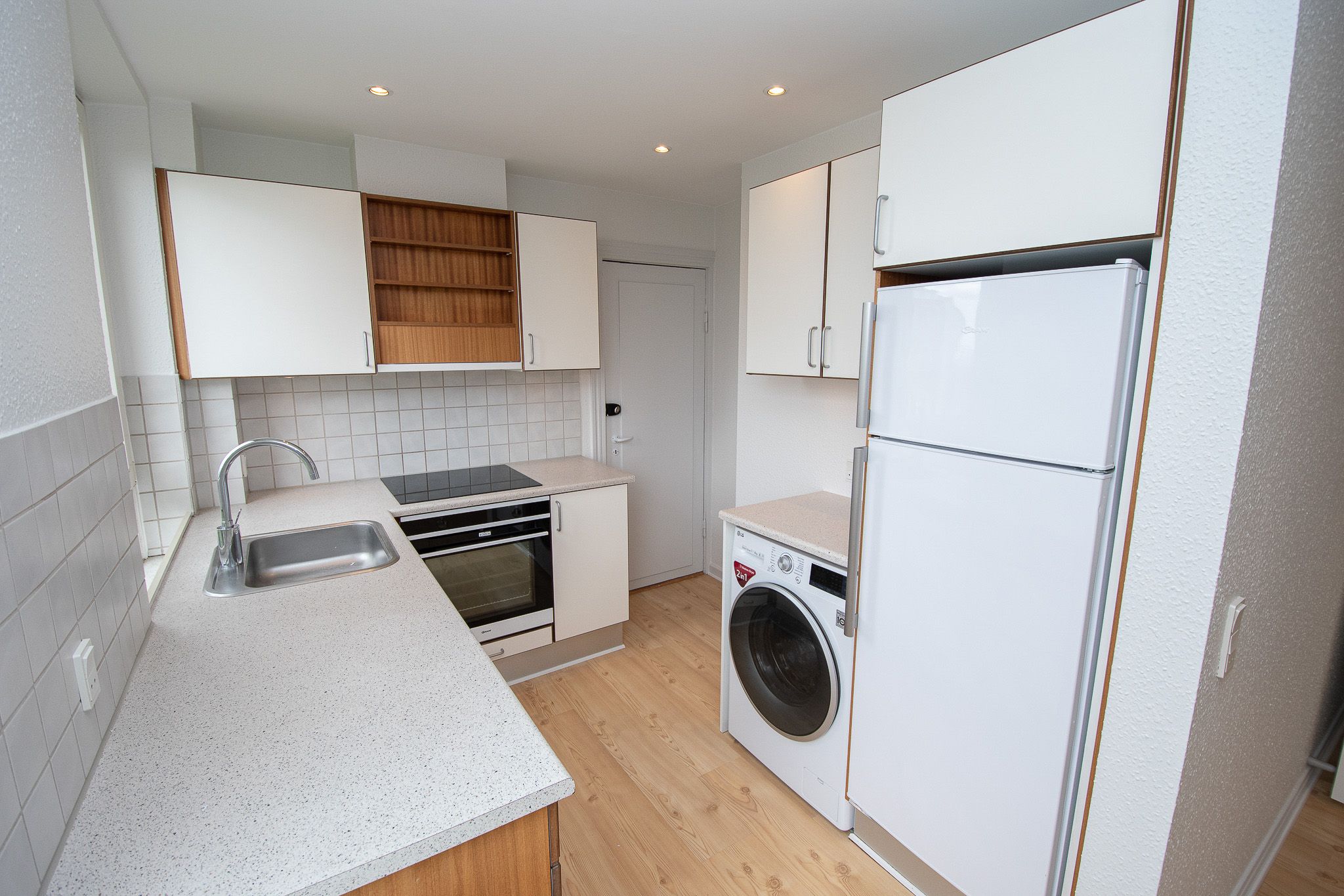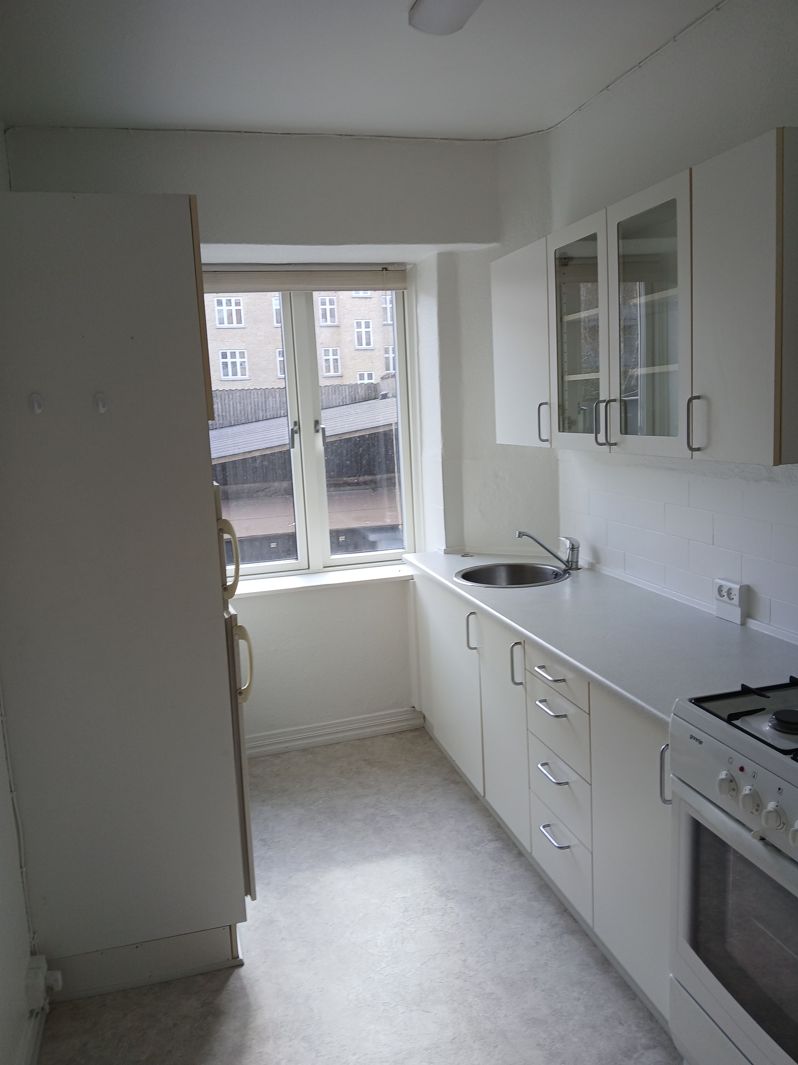 Velkommen til en moderne og funktionel lejlighed på 70 m2, der kombinerer lyse materialer med en hverdagsvenlig planløsning. Boligen ligger i en velholdt ejendom med elevator og et hyggeligt, overdækket gårdmiljø, hvor der er fælles borde og stole. Her er der desuden mulighed for at opstille et mindre cafésæt foran egen bolig mod gården, så du kan nyde udelivet i rolige rammer. Parkering til ejendommen er efter først til mølle-princippet. Lejligheden byder indenfor i en entré med plads til overtøj og opbevaring. Herfra er der adgang til et lyst køkken med hvide, grebsfrie elementer og kontrasterende bordplader, der giver et stilrent udtryk. Køkkenet er veludstyret med kogeplade, ovn, emhætte, køle/fryseskab og opvaskemaskine. Planløsningen leder videre til en rummelig stue med to store vinduer, der giver et behageligt lysindfald og gør rummet nemt at indrette med både sofa og tv-møbel. Soveværelset ligger i forbindelse med stuen og fremstår lyst og roligt med god plads til seng og opbevaring, blandt andet via en praktisk skabsvæg. Badeværelset er rummeligt og tidløst indrettet med separat bruseniche med glasafskærmning, væghængt toilet, spejl og opbevaringsplads ved vasken. Her er der desuden egen vaskesøjle med vaskemaskine og tørretumbler – en klar fordel i en travl hverdag. Gennemgående lyse vægge og slidstærke gulve binder rummene sammen og gør boligen let at indrette i din egen stil. Uden for boligen får du et tilhørende depot/skur til ekstra opbevaring af fx cykel, kasser og sæsonudstyr. Beliggenheden gør hverdagen nem. Du bor tæt på Aalborg Storcenter med et bredt udvalg af indkøb og shopping, og der er hurtig tilkørsel til E45. Offentlig transport er godt dækket med flere busstoppesteder og busstationer i nærområdet, og i dagligdagen har du nem adgang til supermarked, daginstitution, fitness, sportsfaciliteter og lokale butikker som møbelforretning. Husdyr er ikke tilladt – ej heller besøg. Lyder det som noget for dig? Kontakt os for en fremvisning.