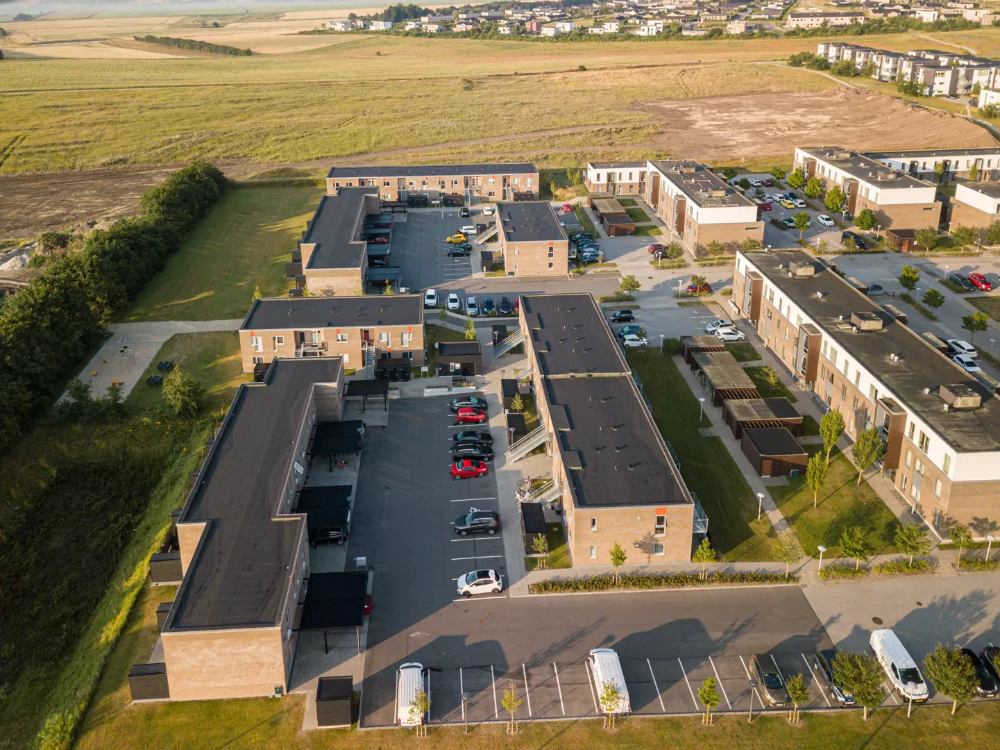 Byggeriet ligger ganske tæt på Lindholm Strandpark og dermed på Limfjorden og alle de udfoldelsesmuligheder, det giver.