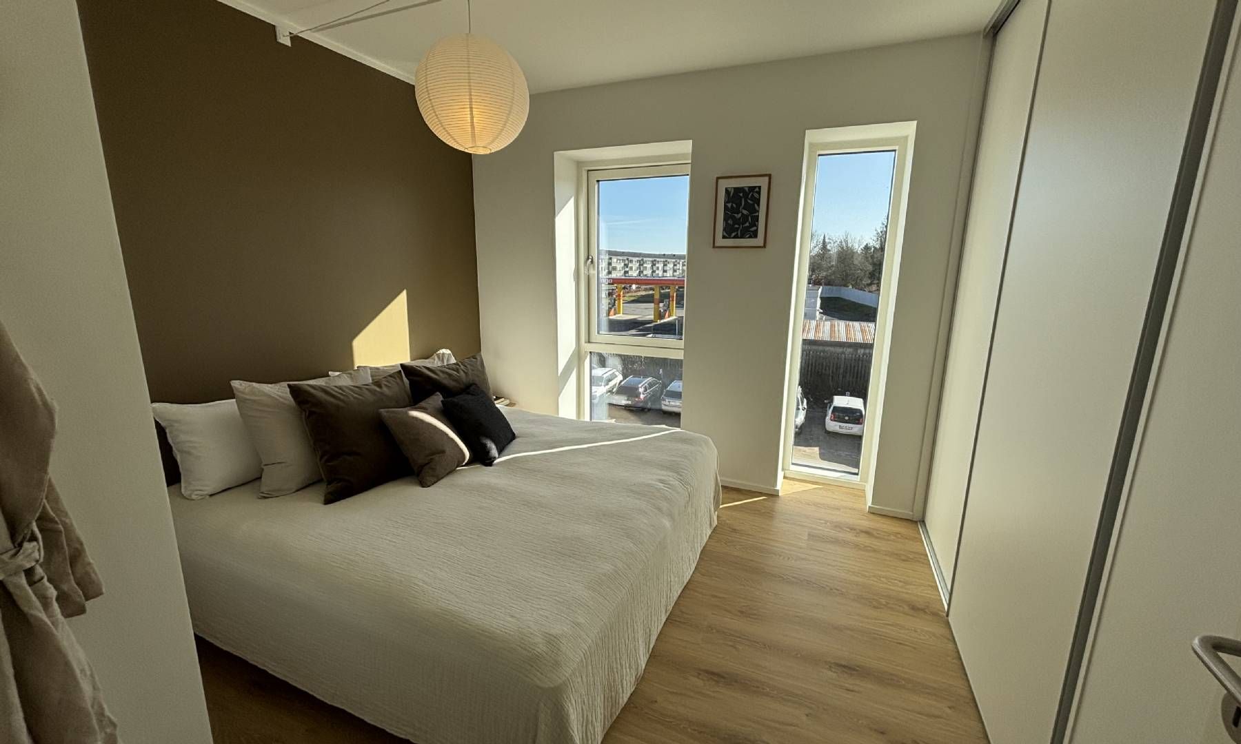 Fra stuen er der adgang til lejlighedens 2 soveværelser, der begge er med garderobeskabe – det ene er med adgang til altanen. Sidst men ikke mindst, har vi det store, flotte og lyse badeværelse, der er med et lækkert badeværelsesarrangement og en god bruseniche.