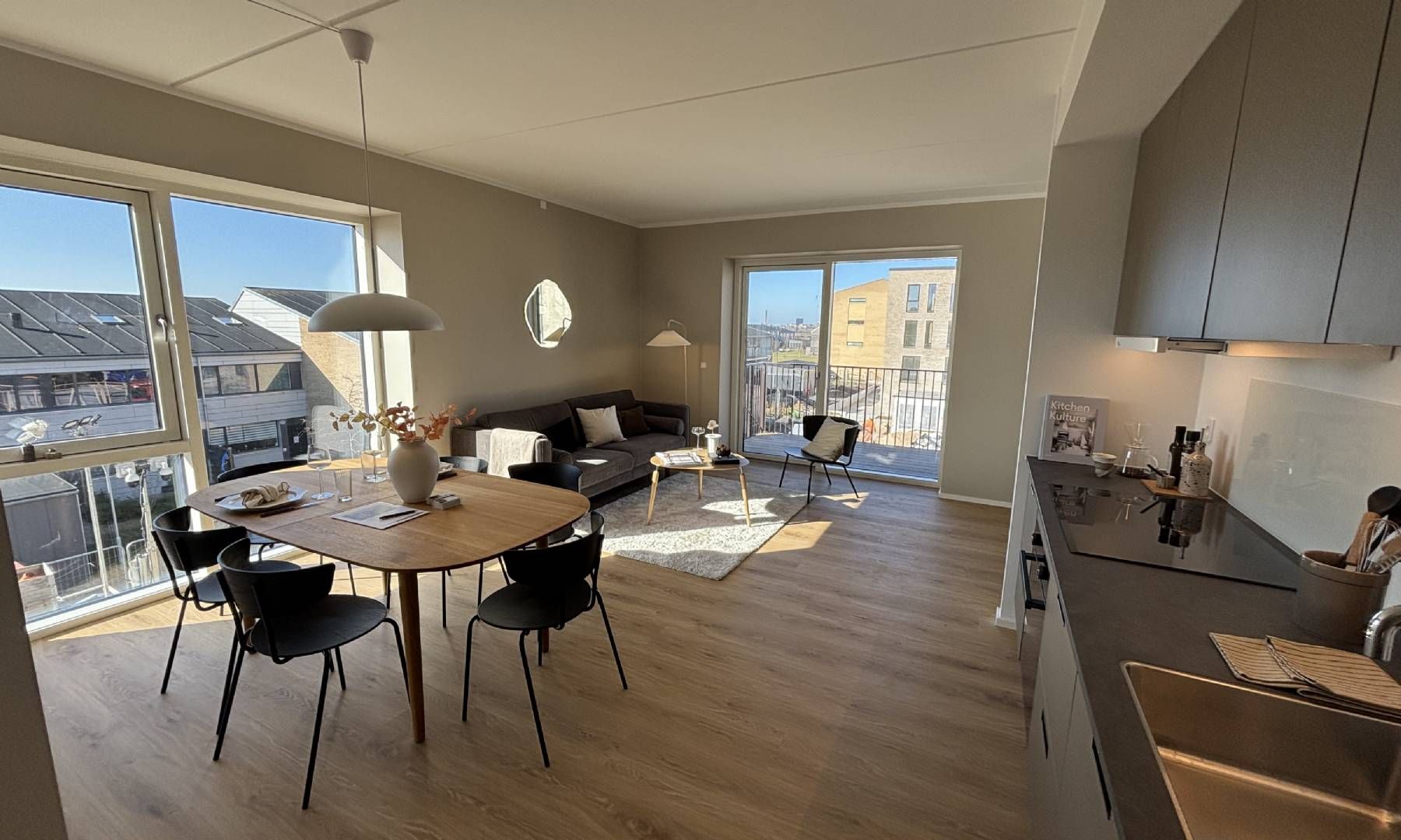 Billederne er ikke fra denne lejlighed men en tilsvarende og med de samme materialer af samme høje kvalitet.