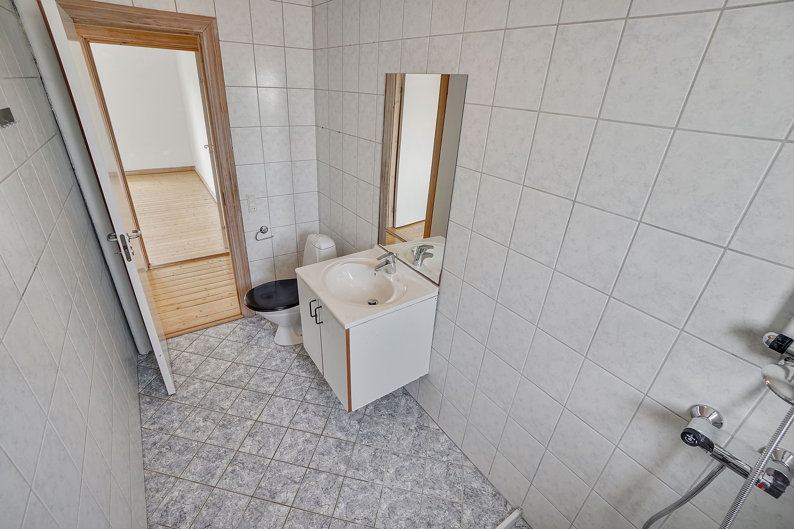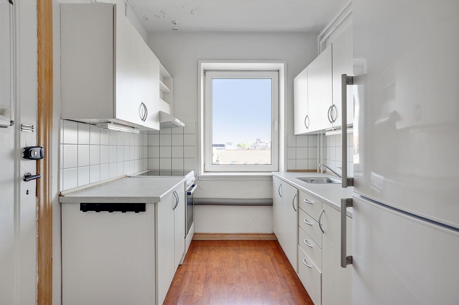 OBS! Billederne er fra en lignende lejlighed med næsten samme planløsning. I denne er der ikke sat en vaskemaskine ind.