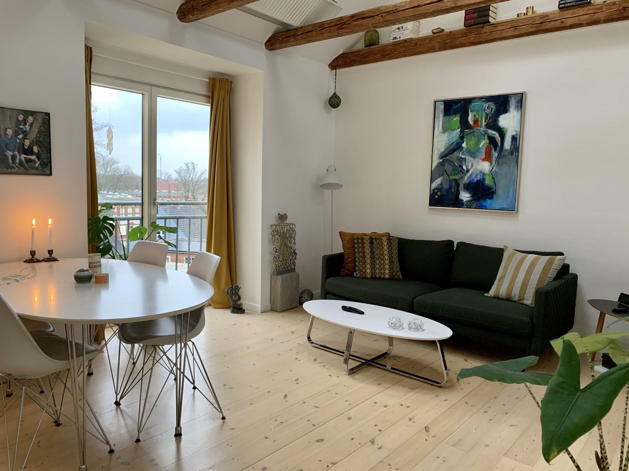 køkkenet er der franske døre ind til lejlighedens rummelige og lyse stue.