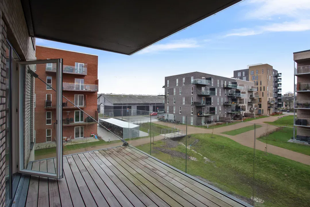 Her får du en unik lejlighed - da der tilhører en privat tagterrasse! Lejligheden indeholder et rummeligt og centralt placeret køkken/alrum med plads til både spiseplads og stuehjørne. Derudover består lejligheden af et moderne badeværelse, et depotrum til ekstra opbevaring samt to værelser. Der er køleskab, fryser, opvaskemaskine, vaskemaskine og tørretumbler i lejemålet. Lejere kan ansøge om tilladelse til at holde én indekat eller hund på adressen. Der er en privat p-plads inkluderet i lejen. Beliggenheden er perfekt for dig, der ønsker ro og nærhed til byens puls. Kennedy Arkaden og Aalborg Centrum ligger blot en kort 5-minutters cykeltur væk, med et væld af indkøbsmuligheder og restauranter. Og området er omgivet af skønne, grønne fællesområder med legepladser.