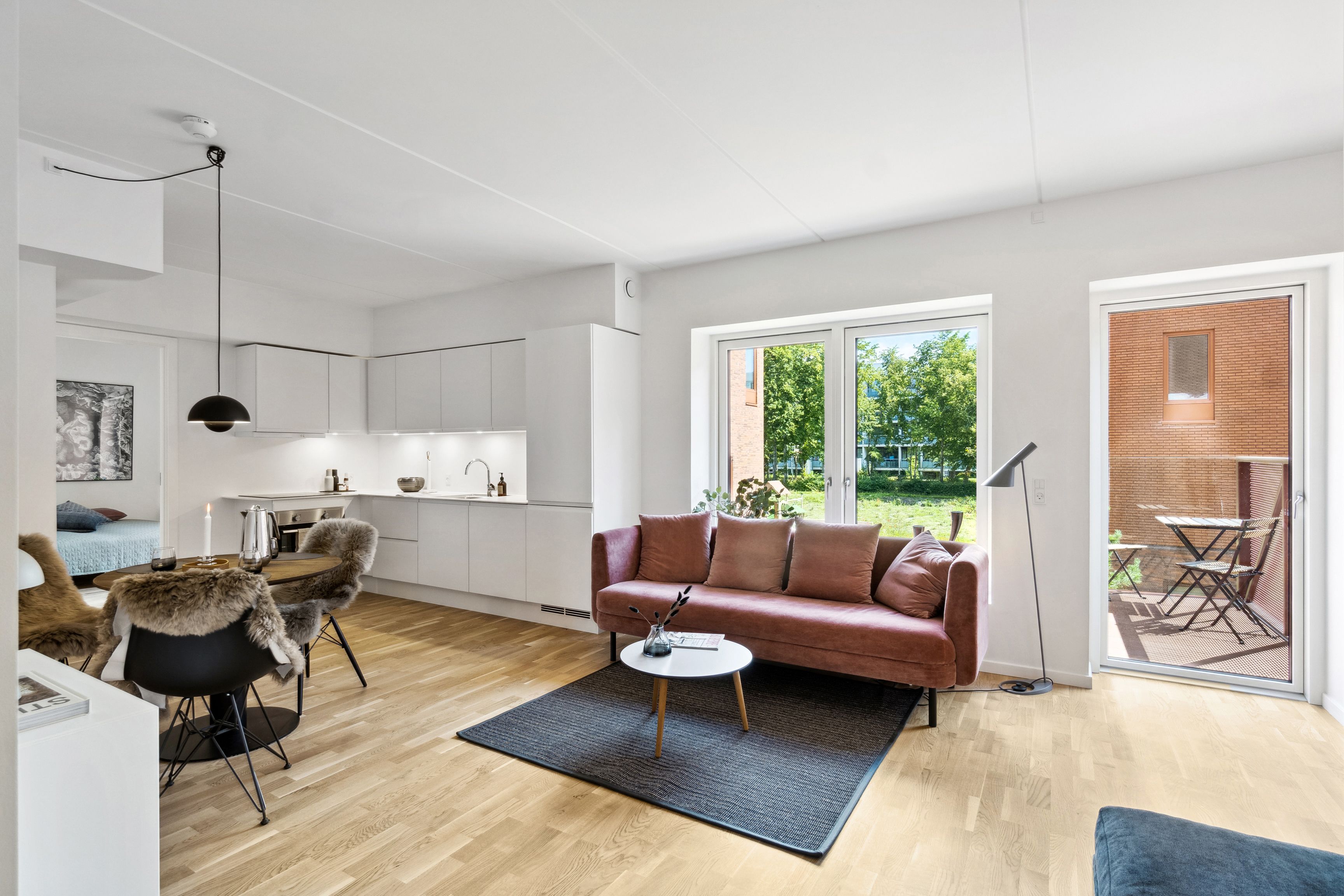 I nærområdet finder du blandt andet Byparken med store grønne arealer, frugttræer, legepladser og gode opholdsmuligheder. Derudover ligger det nye Karen Blixen Kvarter lige ved siden af – et attraktivt boligområde med fokus på fællesskab, mangfoldighed, naboskab og et trygt børneliv. Området byder på mange lokale aktiviteter, initiativer og et aktivt foreningsliv.