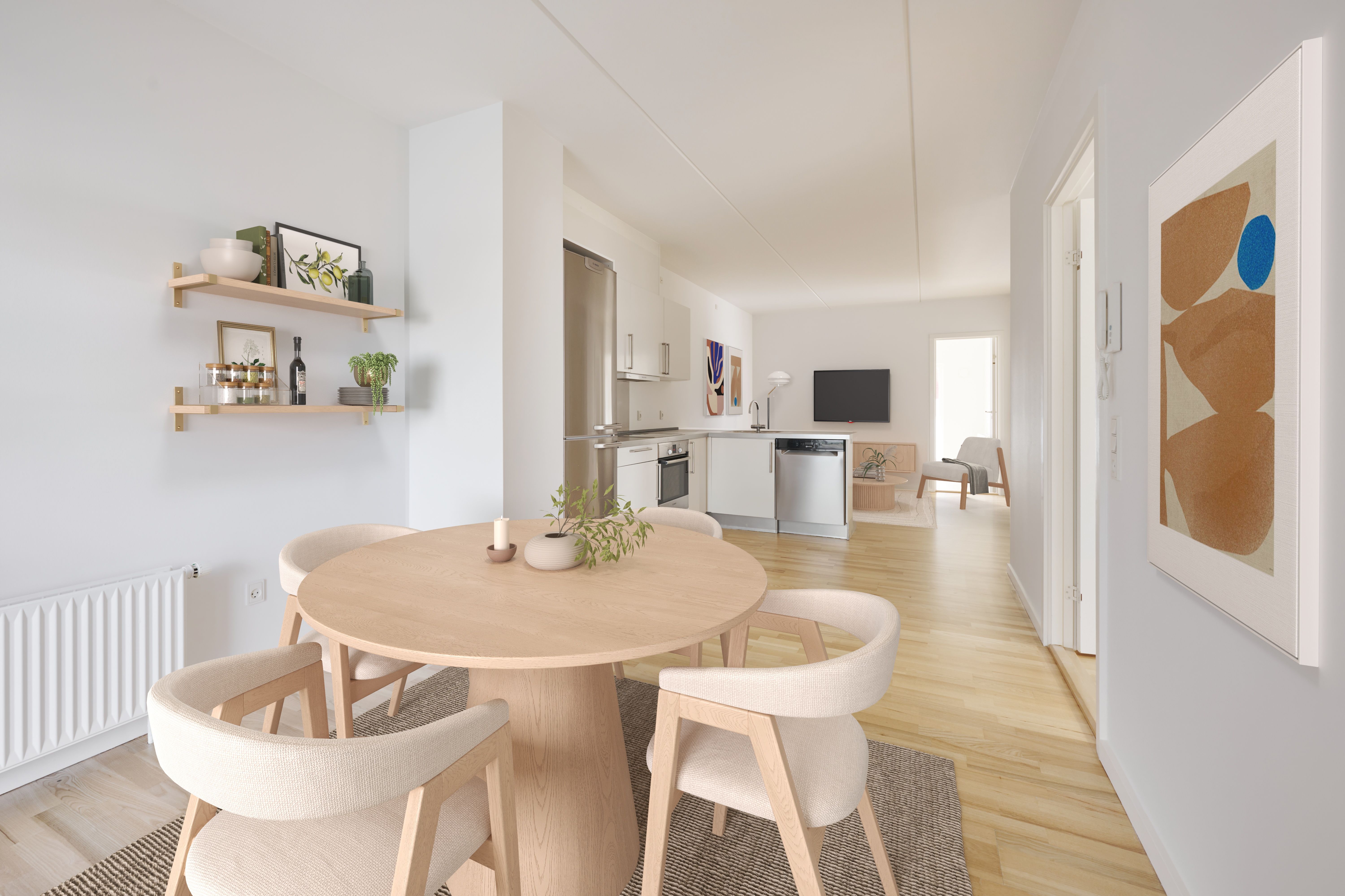 **Moderne og indbydende boliger ved vandet – Havneholmen, Aarhus Ø** På Havneholmen bor du moderne, lyst og komfortabelt – lige ud til vandet i hjertet af Aarhus Ø. Her finder du lejligheder med 2, 3, 4 eller 5 værelser, alle med enten terrasse i stueplan eller altan fra første sal og op. Alle opgange har elevator direkte fra p-kælderen og op til lejlighederne – praktisk og bekvemt i hverdagen. Boligerne er indrettet med åbent opholdsrum, hvor køkken, spiseplads og stue er integreret i ét lyst og luftigt rum. De store vinduer skaber et skønt lysindfald og giver dig mulighed for at nyde udsigten. Soveværelserne har faste skabe, og badeværelset er udstyret med gulvvarme, separat bruseniche og vaskesøjle. Overalt er der valgt kvalitetsmaterialer – herunder gennemgående asketrægulve og stilrene elementer fra JKE Design. Havneholmen er et oplagt valg for dig, der ønsker en moderne bolig med gennemtænkt indretning, god komfort og en unik beliggenhed tæt på både by og vand. Der vil i forbindelse med anmodning om leje af boligen, blive fortaget en kreditvurdering af kommende lejer ved anvendelse af CPR-nummer. Det er ikke tilladt at være registreret hos Debitorlisten eller i RKI, hvis man vil leje en bolig. OBS! Billederne er ikke fra den specifikke bolig.