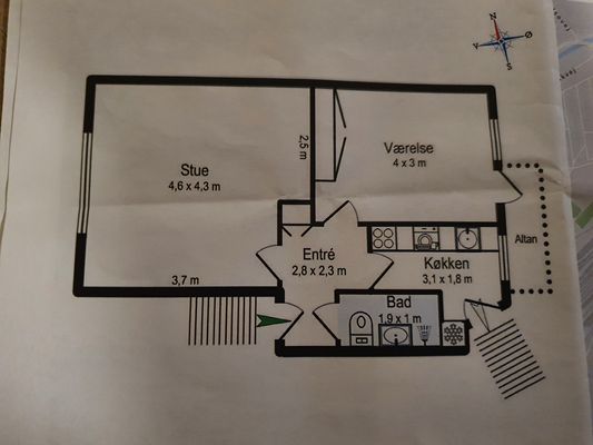 3 vær. lejlighed på 80 m²