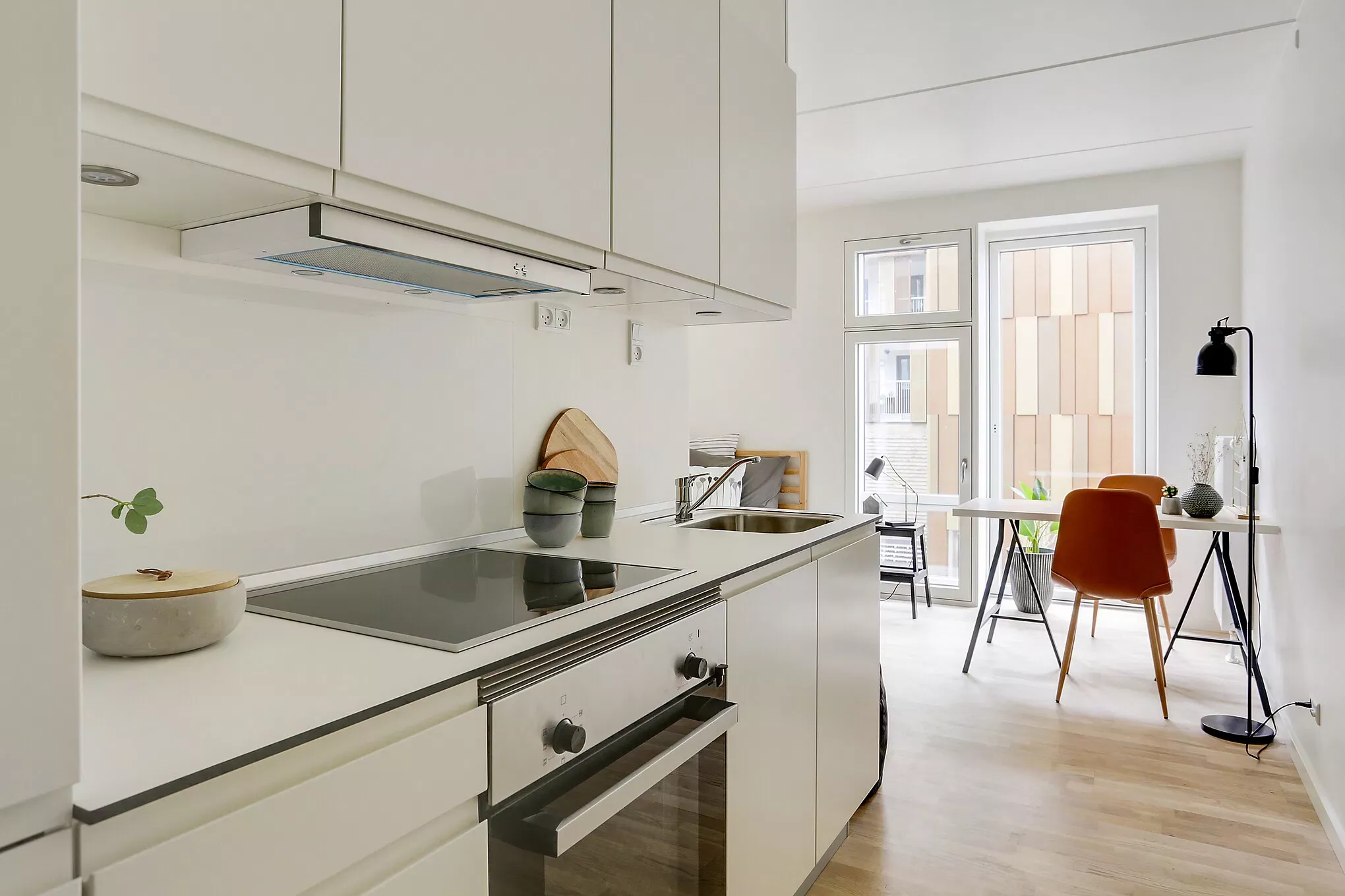 Træd ind i denne lækre, møblerede lejlighed i archouse, hvor moderne livsstil møder høj komfort. Her får du en funktionel og velindrettet bolig. Lejligheden byder på et åbent og lyst opholdsrum med integreret køkken og opvaskemaskine! De gennemtænkte løsninger giver maksimal udnyttelse af pladsen – blandt andet en smart sove-/sofaløsning med opbevaring samt et fleksibelt arbejdsområde, der også kan bruges som hyggelig alkove. Badeværelset er rummeligt, med separat bruseniche og stilrene detaljer. Altanen giver dig et privat uderum, perfekt til afslapning på lune aftener. Er du studerende? Vi har studiegaranti! Som beboer får du adgang til et væld af attraktive fællesfaciliteter, der løfter hverdagen til noget helt særligt: • Moderne fitness og yogarum • Udendørs træningsområde samt løbe- og multiboldbane • 7 fantastiske tagterrasser • SaunaClub med udendørs bruser • Café og loungeområder til socialt samvær • Fælles køkkener og vaskefaciliteter • Vil du være med til fællesspisning? Det er også en mulighed! • arcHIVE work area med 121 arbejdsstationer • Mini-biograf • Smukt gårdrum med grønne opholdsarealer, bænke og grill Her får du ikke bare en lejlighed – du får en livsstil. Book en fremvisning i dag – og find ud af, hvorfor denne lejlighed er noget helt særligt. Bemærk: Billederne er fra en udstillingslejlighed. Plantegningen svarer til det konkrete lejemål. //////////////////////////////////// Step into this attractive, furnished apartment in Archouse, where modern living meets high comfort. Here you get a functional and well-designed home. The apartment offers an open and bright living room with an integrated kitchen and a dishwasher! The well-thought-out solutions make maximum use of the space – including a smart sleeping/sofa solution with storage and a flexible work area that can also be used as a cozy alcove. The bathroom is spacious, with a separate shower and stylish details. The balcony provides you with a private outdoor space, perfect for relaxing on warm evenings. Are you a student? We have a study guarantee! As a resident, you will have access to a wealth of attractive shared facilities that will make your everyday life something truly special: • Modern fitness and yoga room • Outdoor training area as well as running and multi-ball court • 7 fantastic roof terraces • SaunaClub with outdoor shower • Café and lounge areas for socializing • Shared kitchens and laundry facilities • Would you like to join in communal dining? That's also an option! • arcHIVE work area with 121 workstations • Mini cinema • Beautiful courtyard with green recreational areas, benches, and barbecue Here, you don't just get an apartment—you get a lifestyle. Book a viewing today – and find out why this apartment is so special. Please note: The photos are from a show apartment. The floor plan corresponds to the actual rental property.