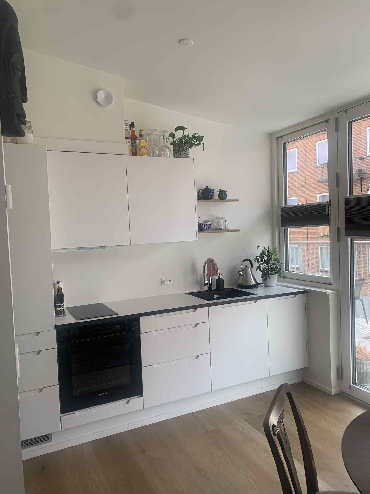 - Eget køkken med kogeplader, ovn, kølefryseskab og opvaskemaskine