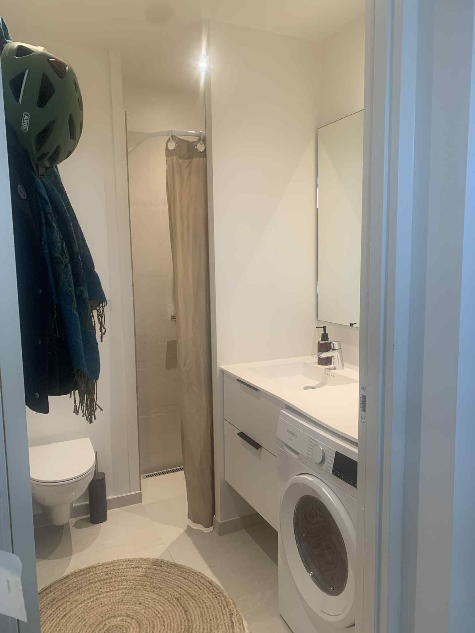 - Badeværelse med kombineret vasketørremaskine