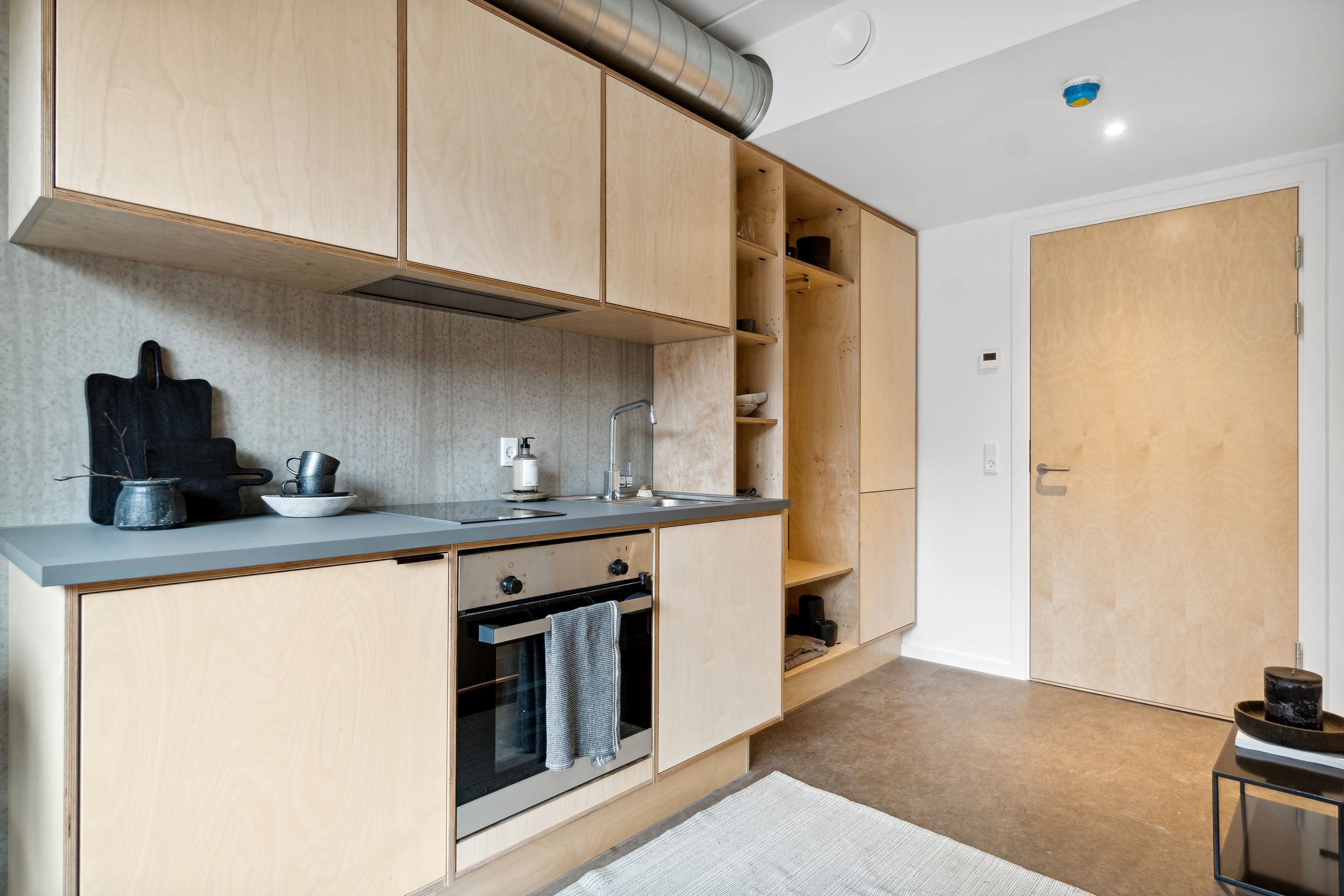 Blækhus Aarhus tilbyder 319 fantastiske og fuldt servicerede lejeboliger (30-35m2) med eget køkken, rummeligt badeværelse, stue med indbyggede skabe og fransk altan. En række fordele, der gør Blækhus Aarhus til et skønt sted at bo: 10 fællesrum med tilhørende altaner. Tagterrasse med petanquebane og udsigt udover Aarhus. Mulighed for lån af lokaler til større forsamlinger. Fællesarealer i de ikoniske lokaler i nabobygningen ”Kulturbunkeren”, hvor du kan mødes med din studiegruppe. Byens måske bedste beliggenhed. Placeringen er både tæt på centrum og i samme område som de store uddannelsesinstitutioner – bl.a. Universitetet, Aarhus Tech og Via University. BEMÆRK! Billederne er taget fra en lignende bolig.