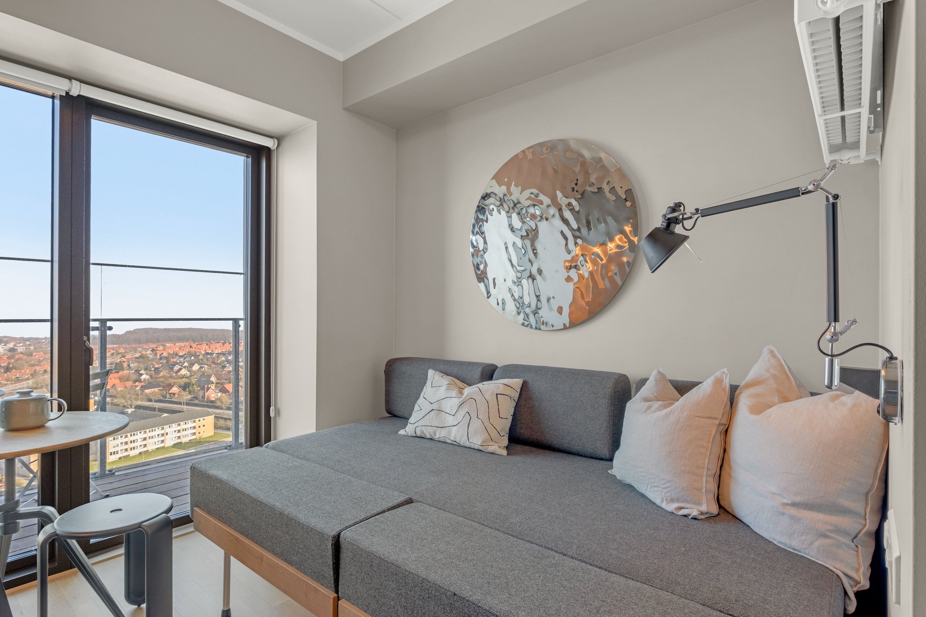Velkommen til Søren Frichs Vej i Aarhus, hvor vi udlejer 1- og 2-værelses lejligheder med egen altan og nogle fantastiske fællesarealer. Hårde hvidevarer Alt i hårde hvidevarer inkl. opvaskemaskine og kombineret vaskemaskine og tørretumbler i lejligheden. Husdyr Lejere kan ansøge om tilladelse til at holde én indekat. Kontakt os for mere information. Parkering Det er muligt at leje en parkeringsplads ved ejendommen. Fælles arealer Søren Frichs Vej skiller sig ud med unikke fællesarealer. På toppen af bygningen kan du arrangere fællesspisning i vores charmerende drivhus - uanset vejret kan du nyde måltidet i tørvejr. Udover det kan du udfordre dine naboer til en fodboldkamp på multibanen med udsigt over Aarhus. De viste billeder kan være fra et andet men tilsvarende lejemål i samme ejendom. Mindre afvigelser kan derfor forekomme.