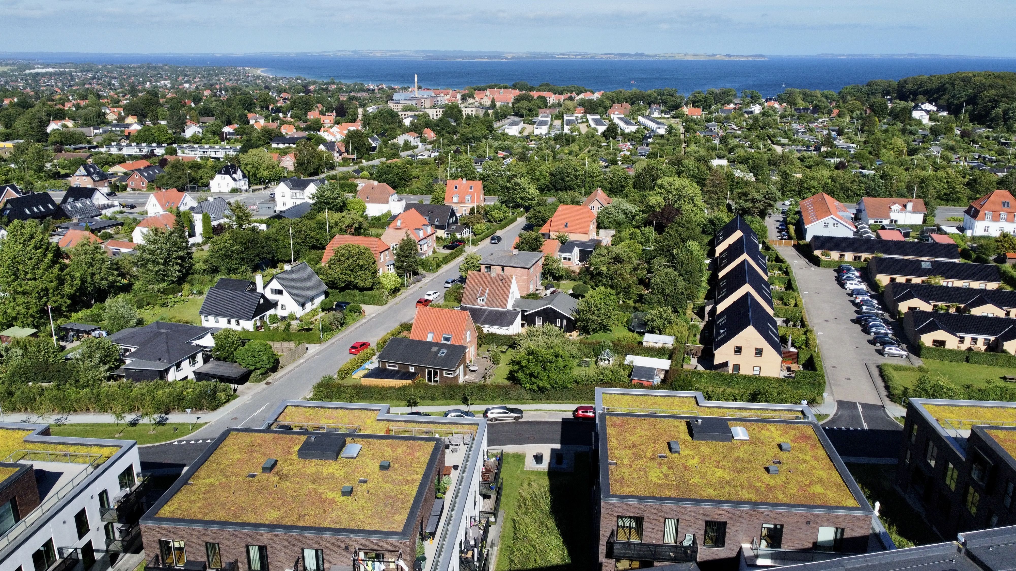 Snart står 80 nye lejeboliger klar i hjertet af Viby - side om side med byliv, blomstrende tagterrasser, butiksliv og Aarhus i horisonten.