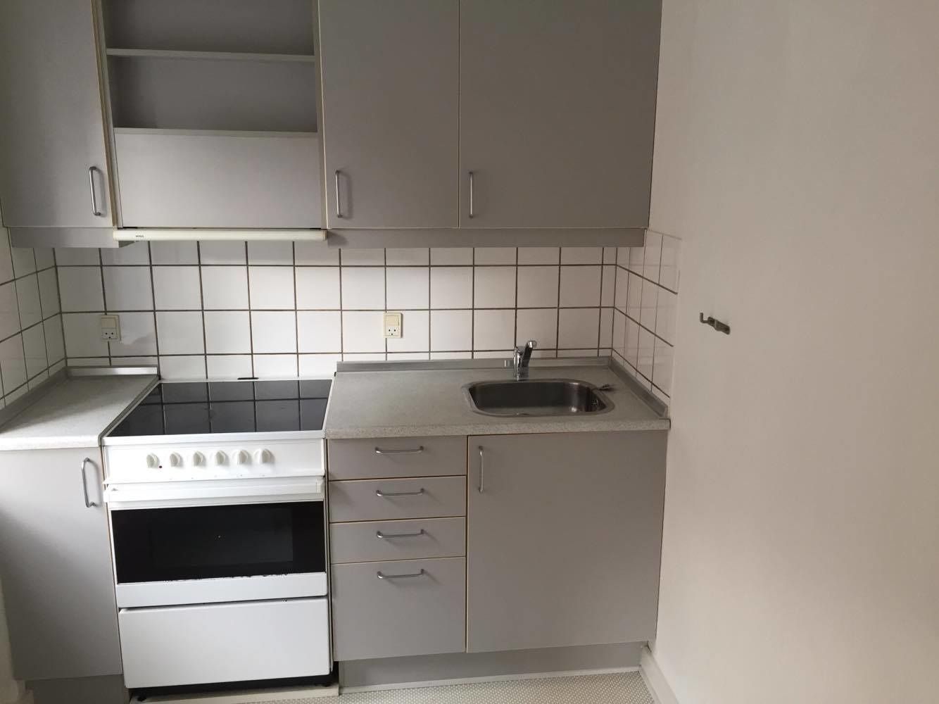 En funktionel 1-værelses lejlighed med fælles udeareal. Et åbent køkken, som ligger i forlængelse af stuen. Her er der både plads til spisebord og seng. Badeværelset er praktisk indrettet med bruseniche og vaskemaskine/tørretumbler. En velindrettet lejlighed med effektiv udnyttelse af kvadratmeterne.