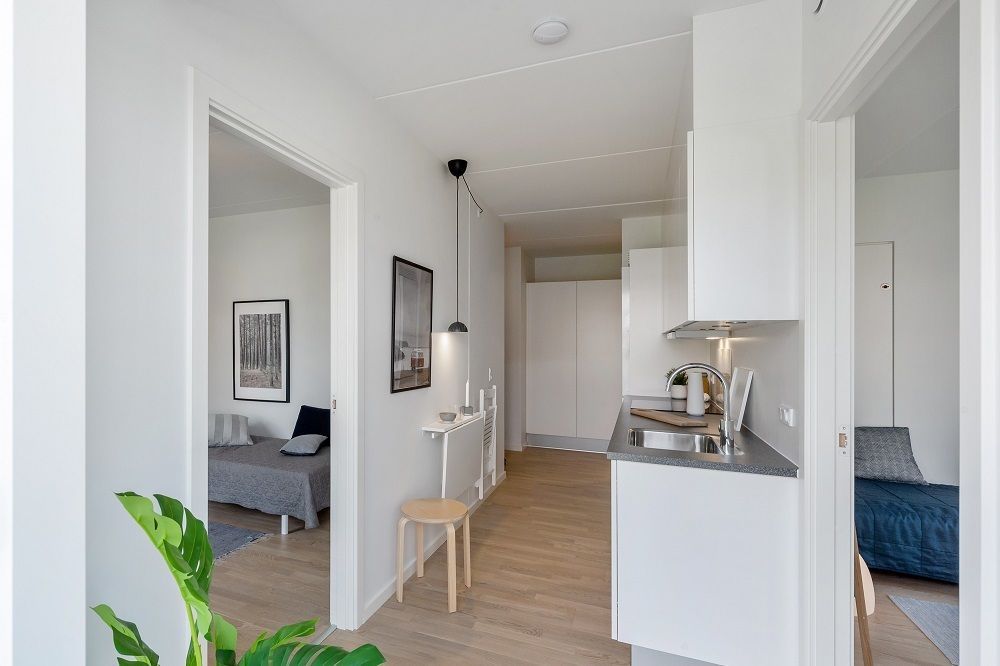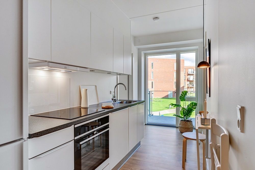 Lejlighederne findes med ét, to eller tre værelser – så der er noget for enhver smag. De to- og treværelses lejligheder har ét eller to separate værelser samt et lyst og åbent køkken-alrum. Alle rum har gulvvarme.