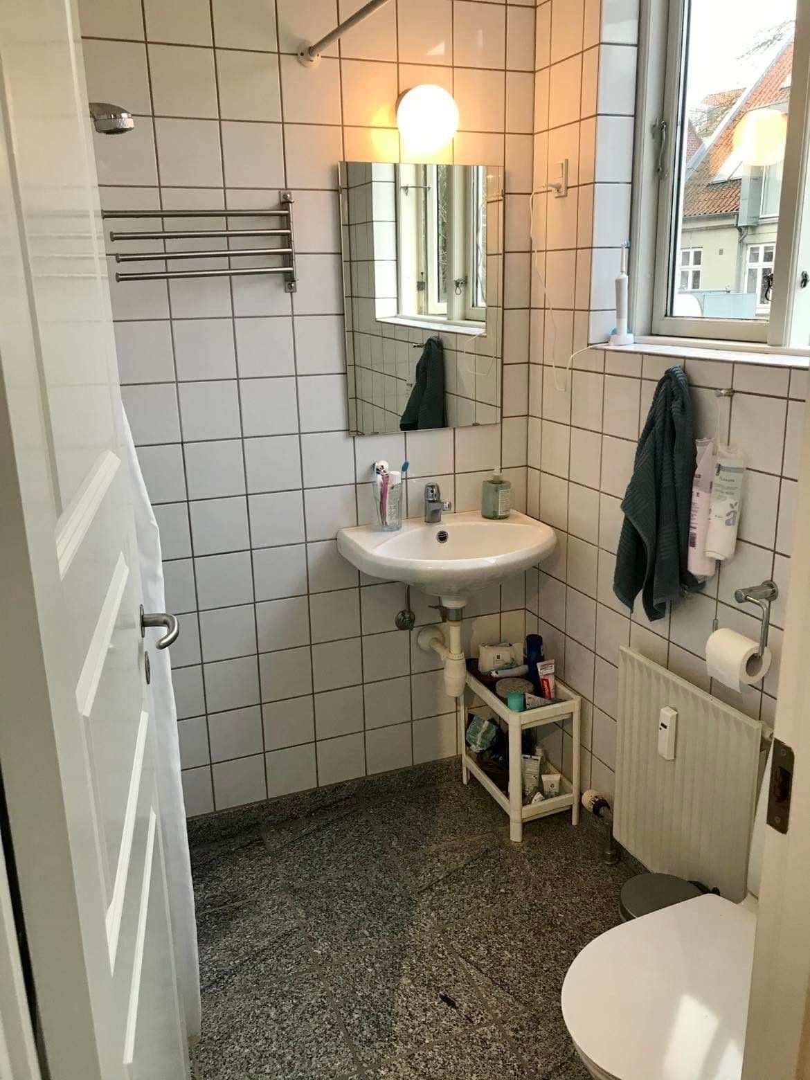 Badeværelse med vaskemaskine og tørretumbler