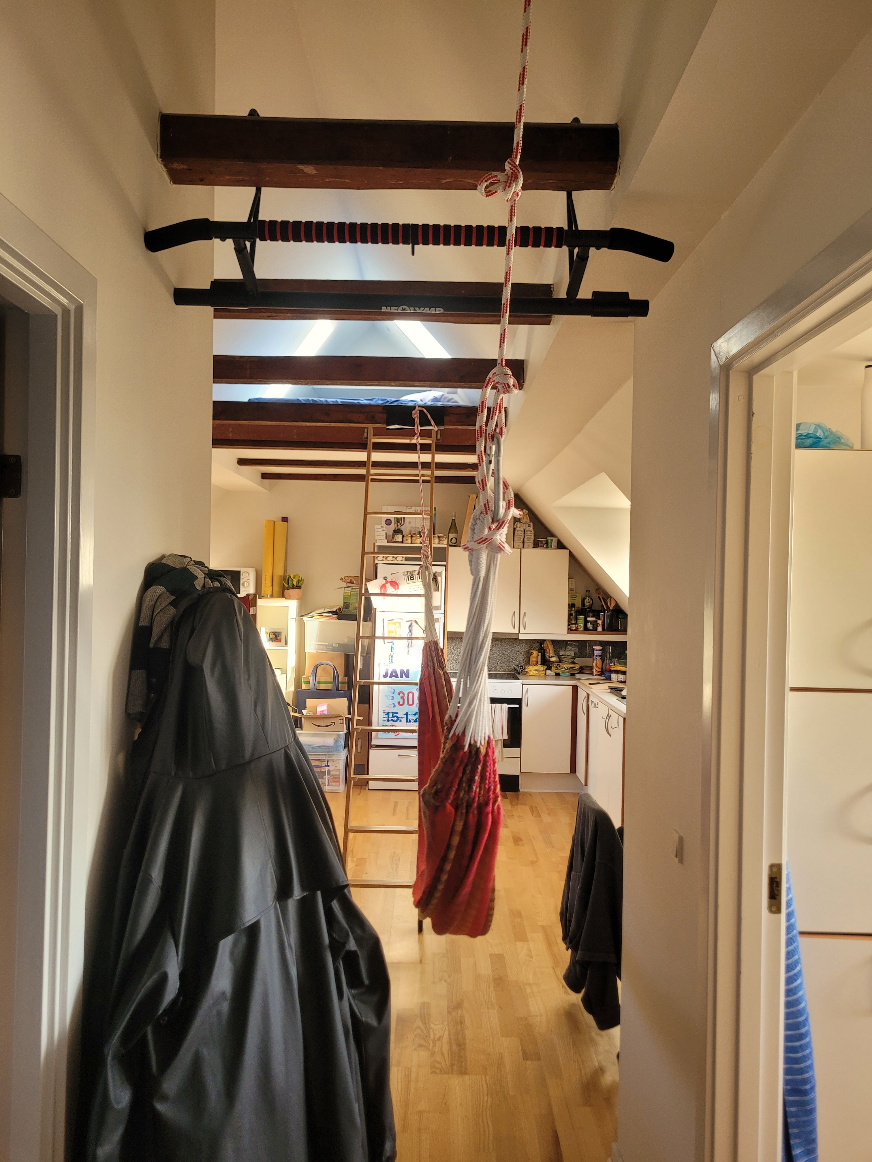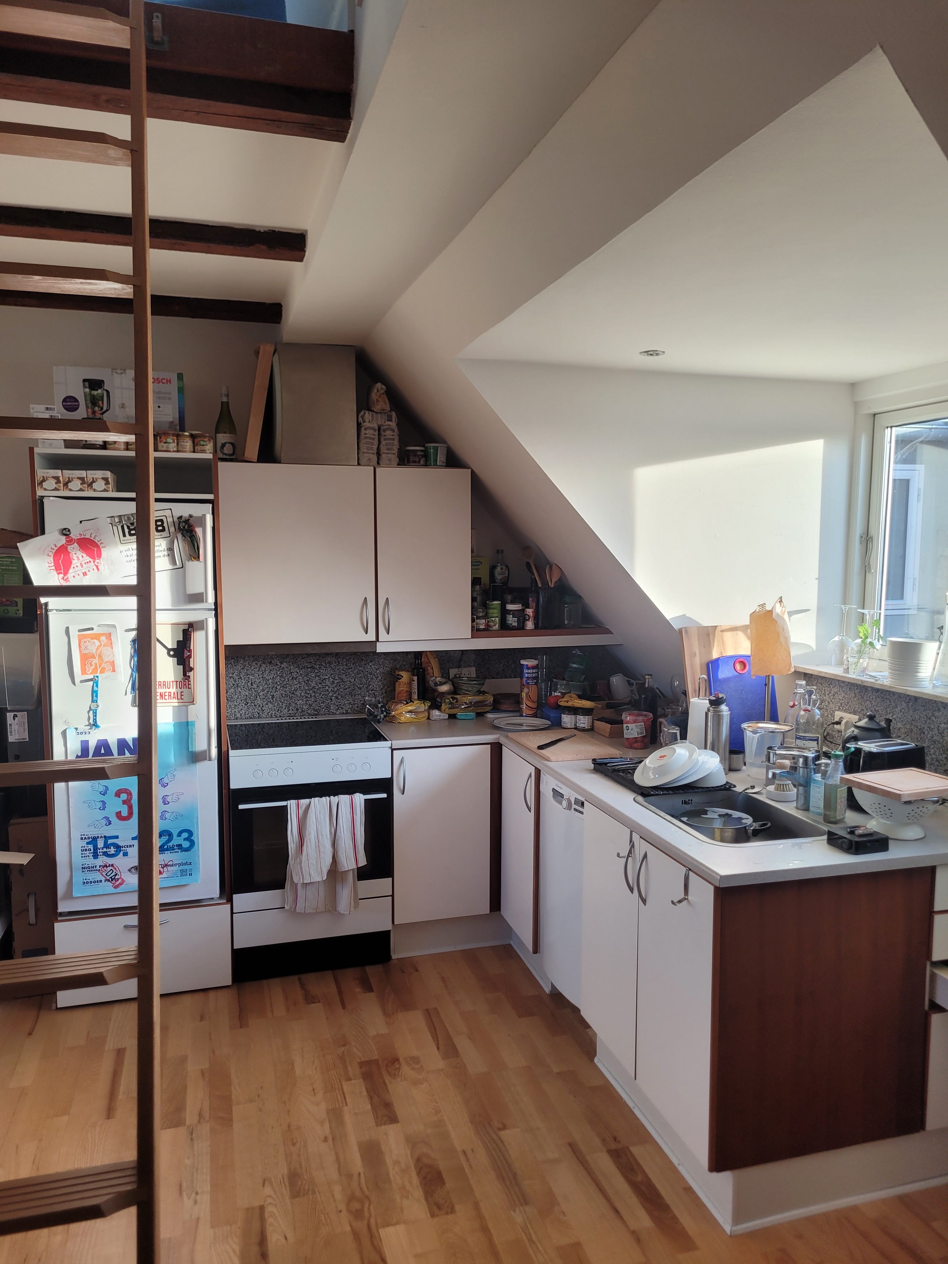 Lejemålets kvadratmeter bliver udnyttet rigtig godt og den er samtidig indrettet med en masse skabsplads. I lejligheden er der køle-/fryseskab, komfur, emhætte, opvaskemaskine samt kombi vaske/tørremaskine.