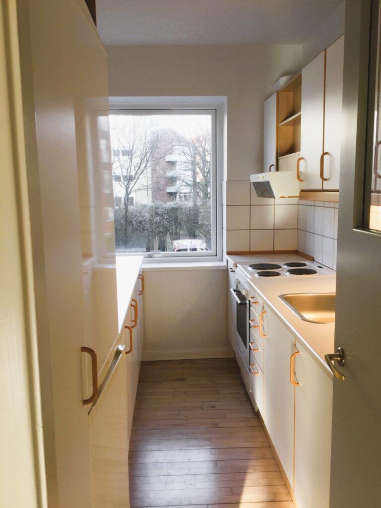Denne lejlighed er gennemgribende moderniseret og fremstår overalt i flot finish. Lejligheden indeholder: entre med klinker. Stort soveværelse med skabsvæg. Flot badeværelse med væghængt toilet, stort spejl, bruseniche, der er installation til vaskemaskine. Flot svanekøkken med god bord og skabsplads og alt i hårdehvidevarer. Opholdsstue med udgang til inddækket altan. Der er gode fællesfaciliteter i ejendommen med bl.a. aflåst cykelkælder, velfungerende vaskekælder, der er ligeledes gratis parkering ved ejendommen. Der er store grønne arealer omkring ejendommen. OBS: billeder er fra en tilsvarende lejlighed