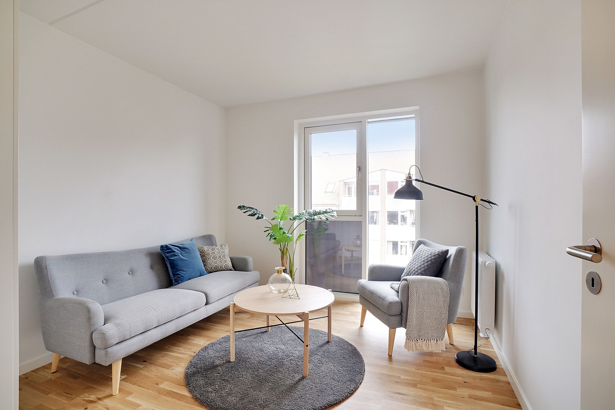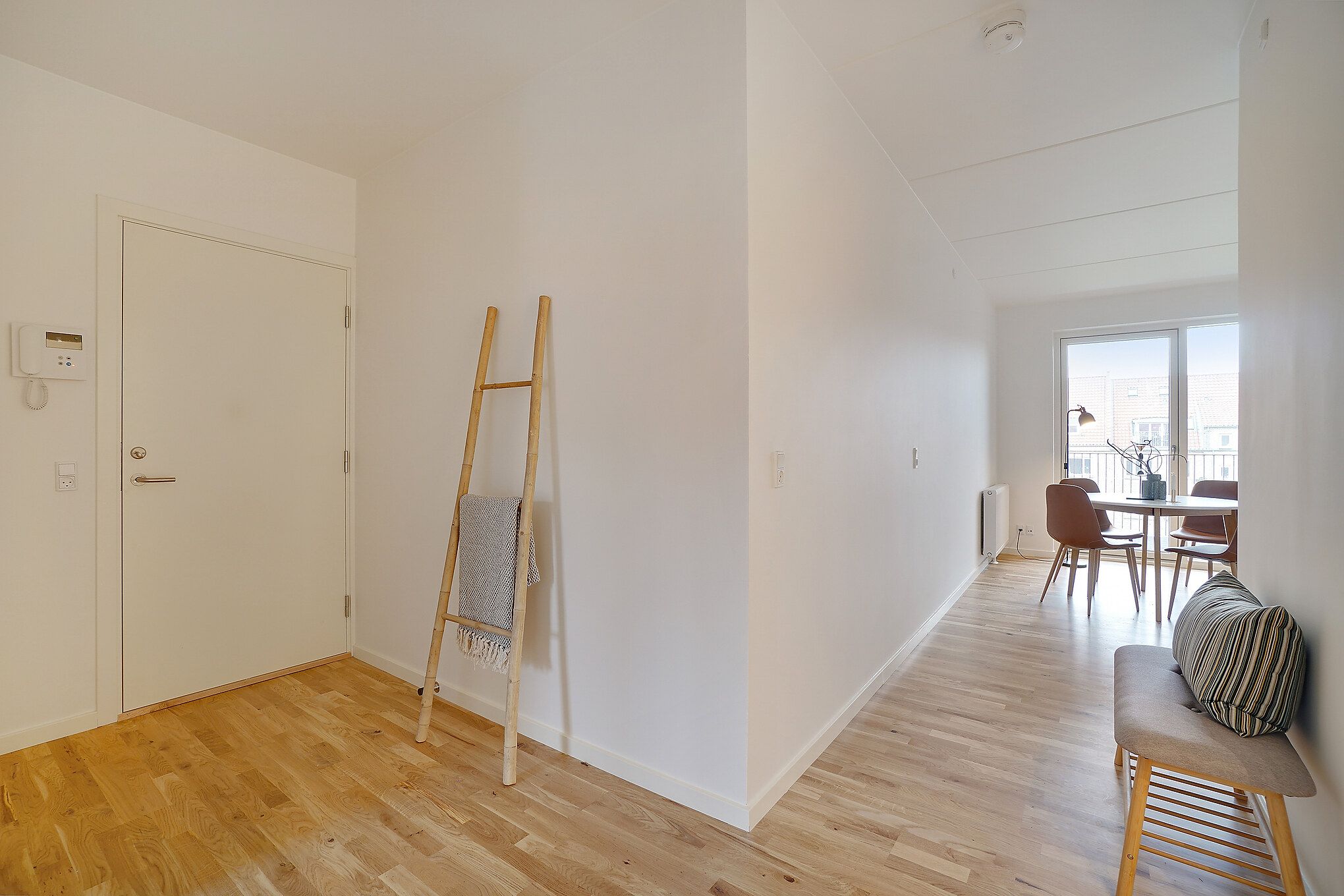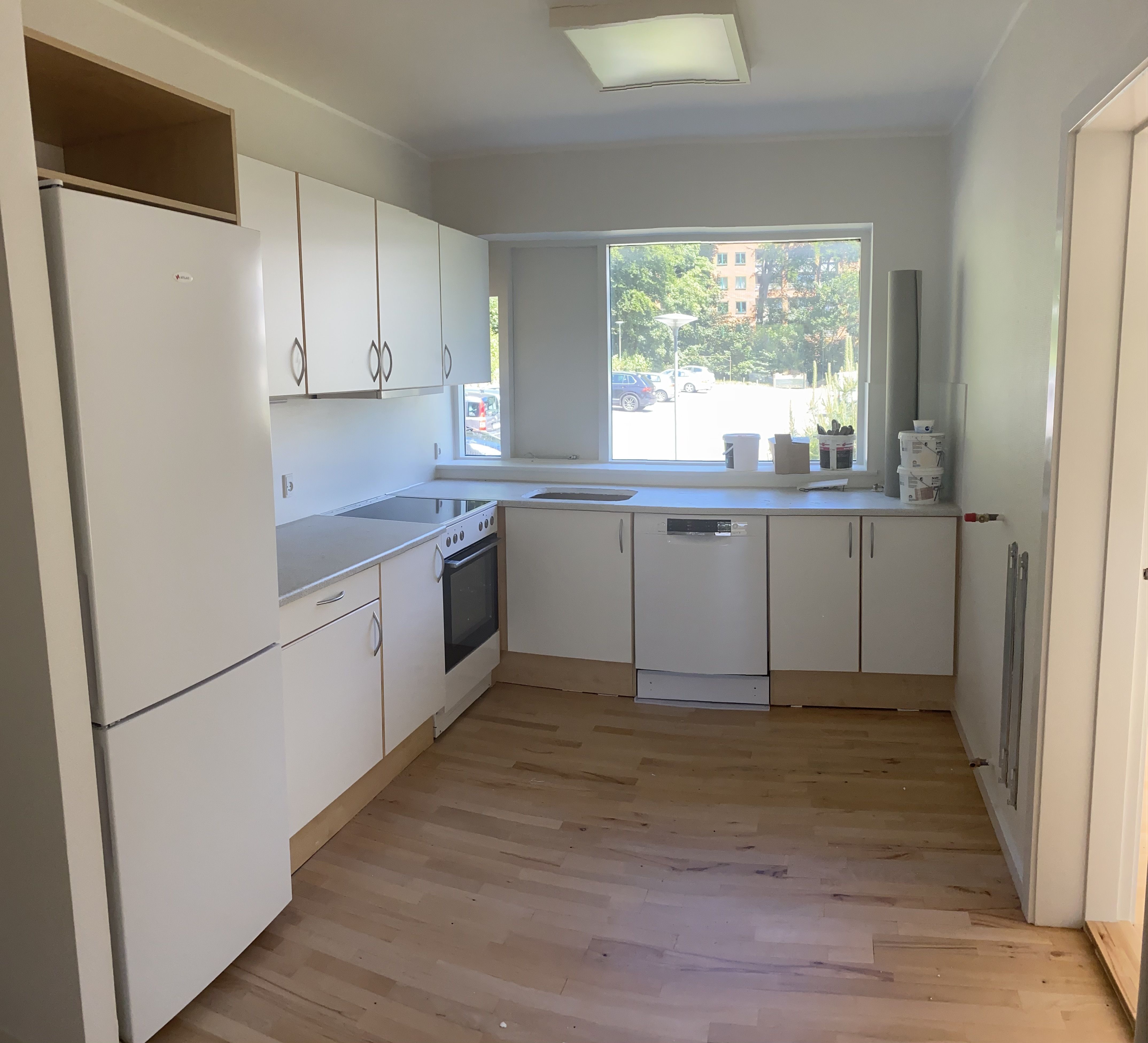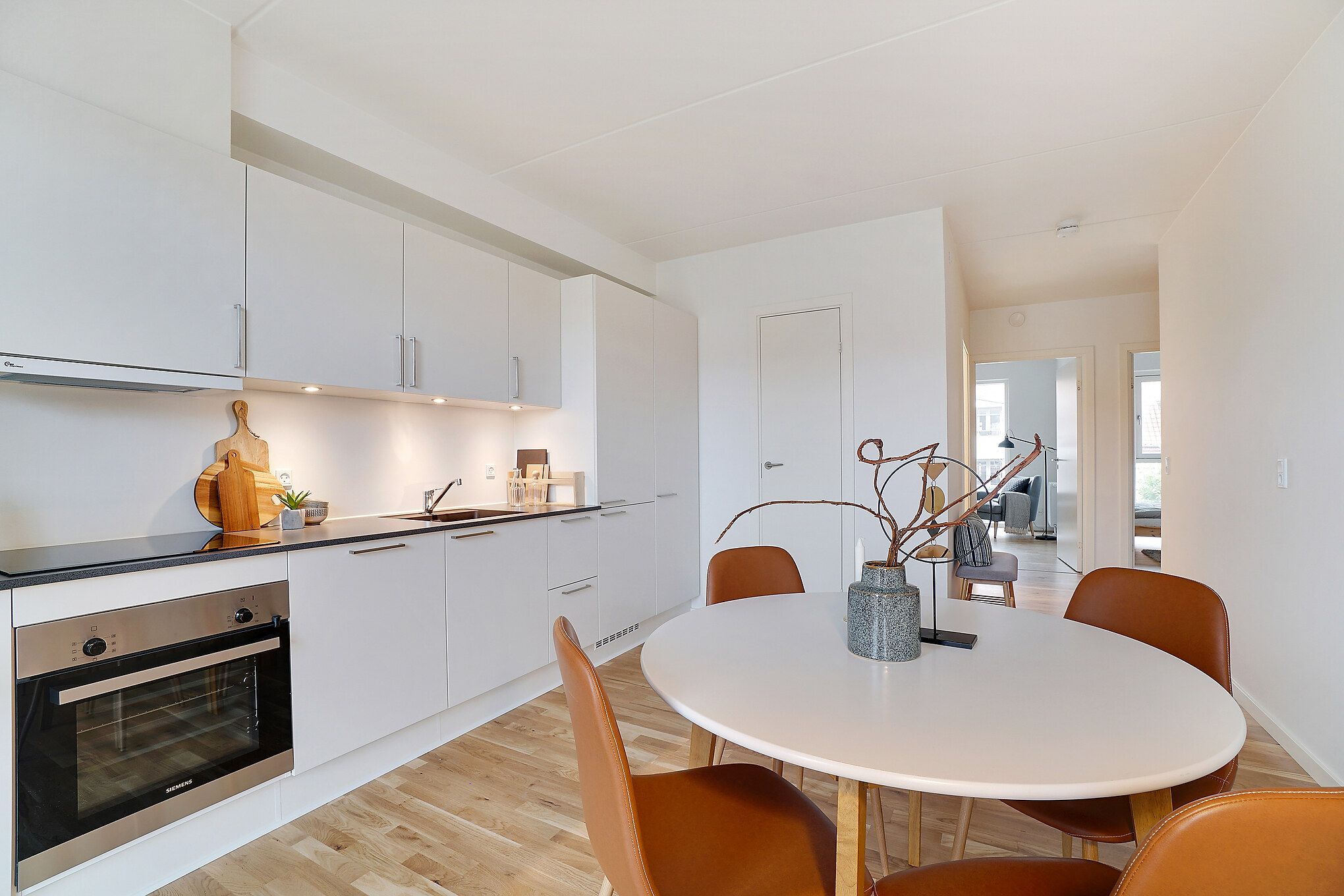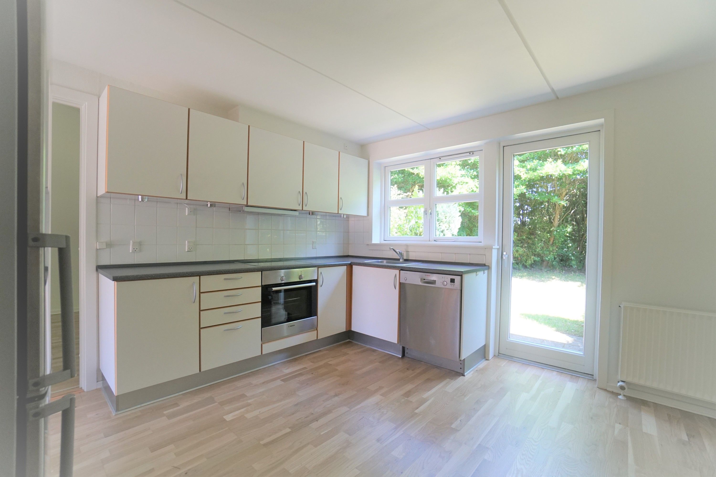 I denne 3-værelses lejlighed er der kælet for detaljerne. Køkkenet er opført i smukke detaljer, trægulvene i lyse materialer og alt i hårde hvidevarer følger med i lejligheden.