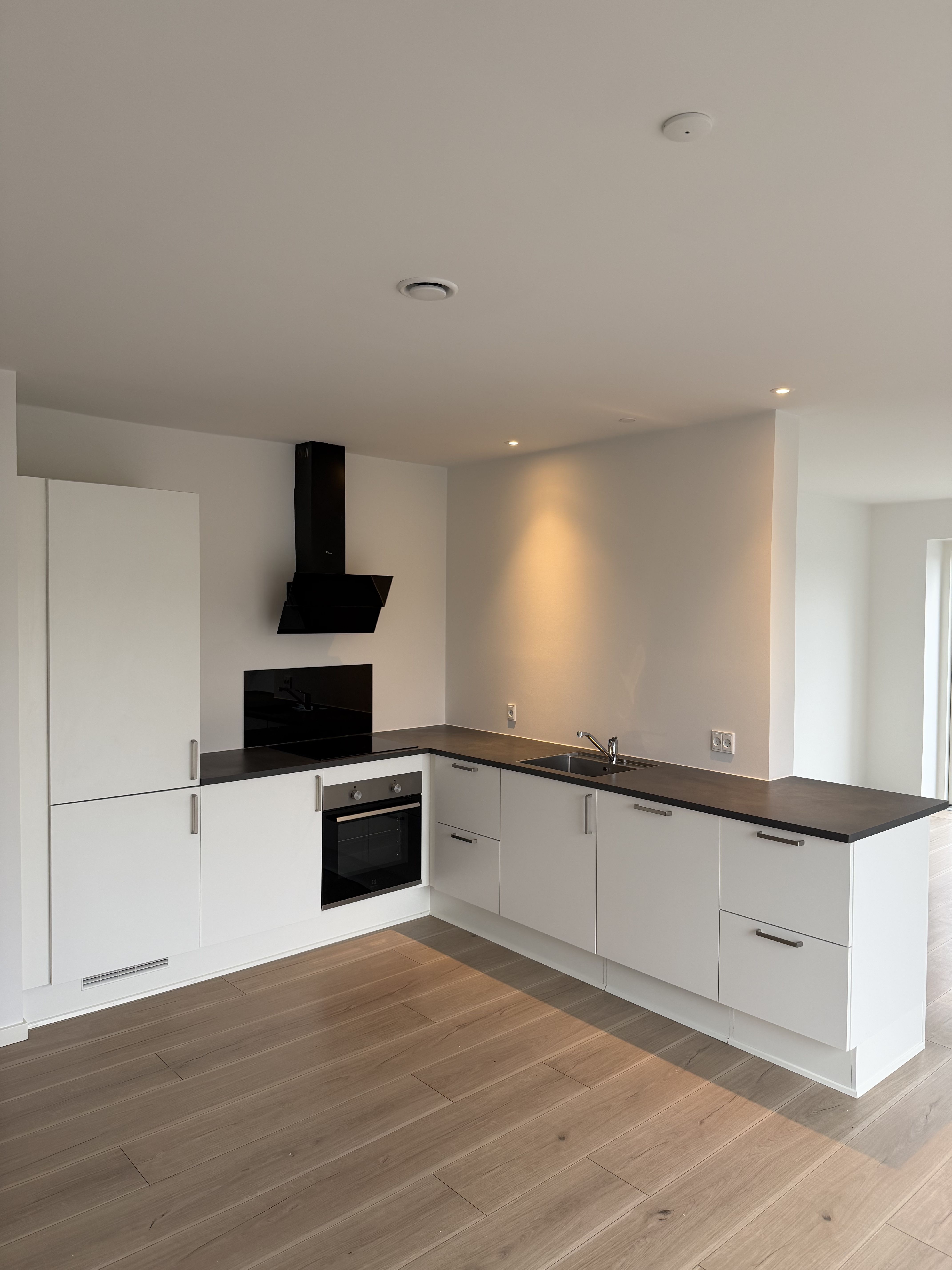 Lyst stort køkken med opvaskemaskine