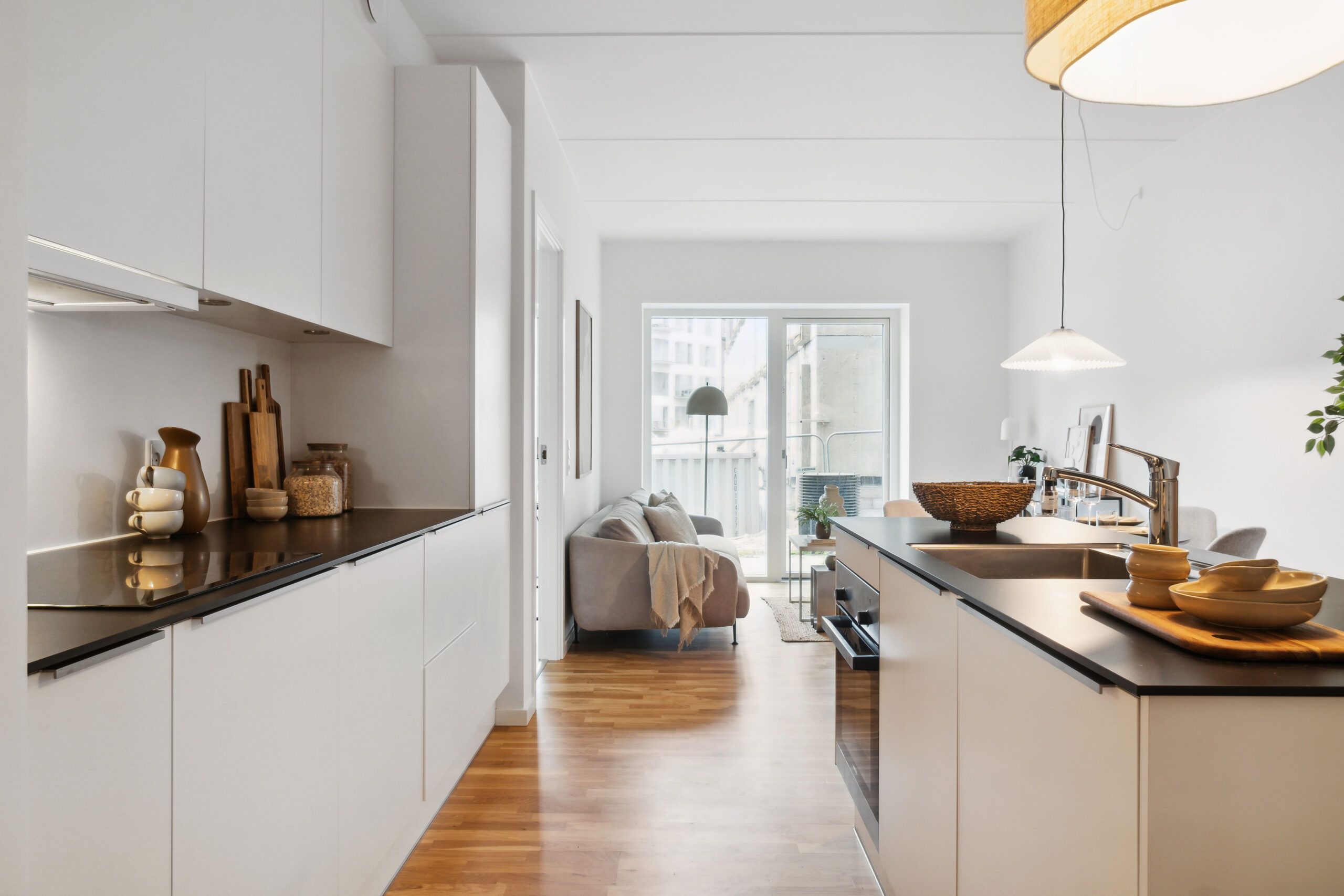 Lejlighederne er indrettet med store vinduespartier, og hjertet i boligen er det store, lækre køkkenalrum, hvor dagslyset i mange af dem strømmer ind fra begge sider. De fleste boliger har desuden en smuk karnap, der åbner rummet endnu mere op og fylder det med lys.