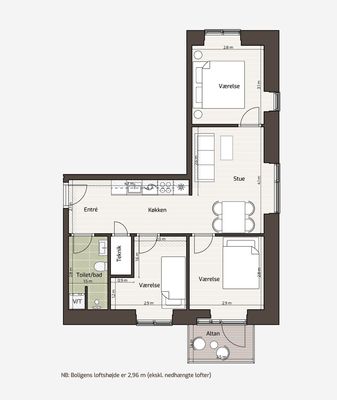 3 værelses lejlighed på 88 m²
