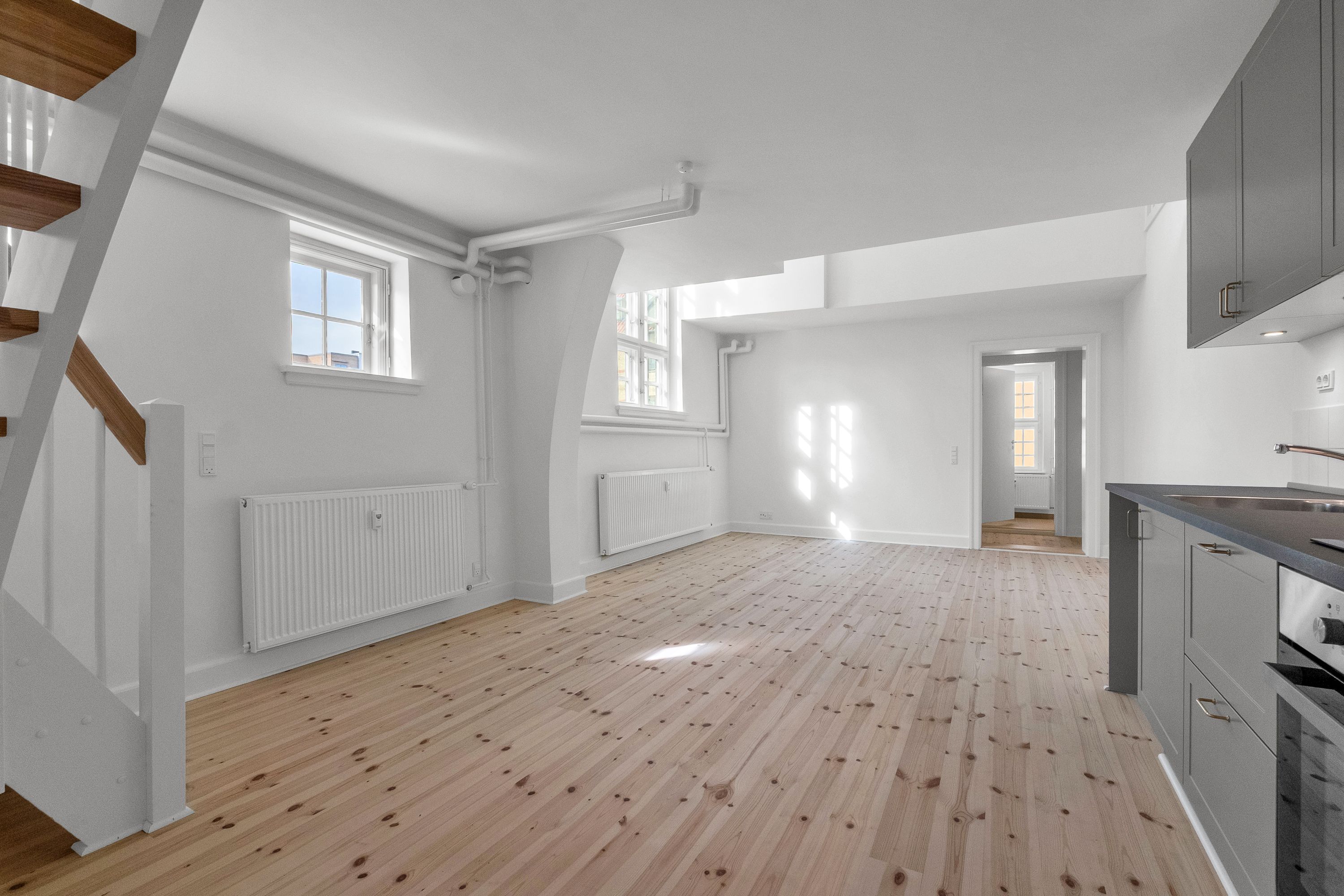 I første parket til udsigten over Aarhusbugten ligger de mere eksklusive villalejligheder med op til fem værelser, ekstra badeværelse og egen tagterrasse i de øverste penthouselejligheder.