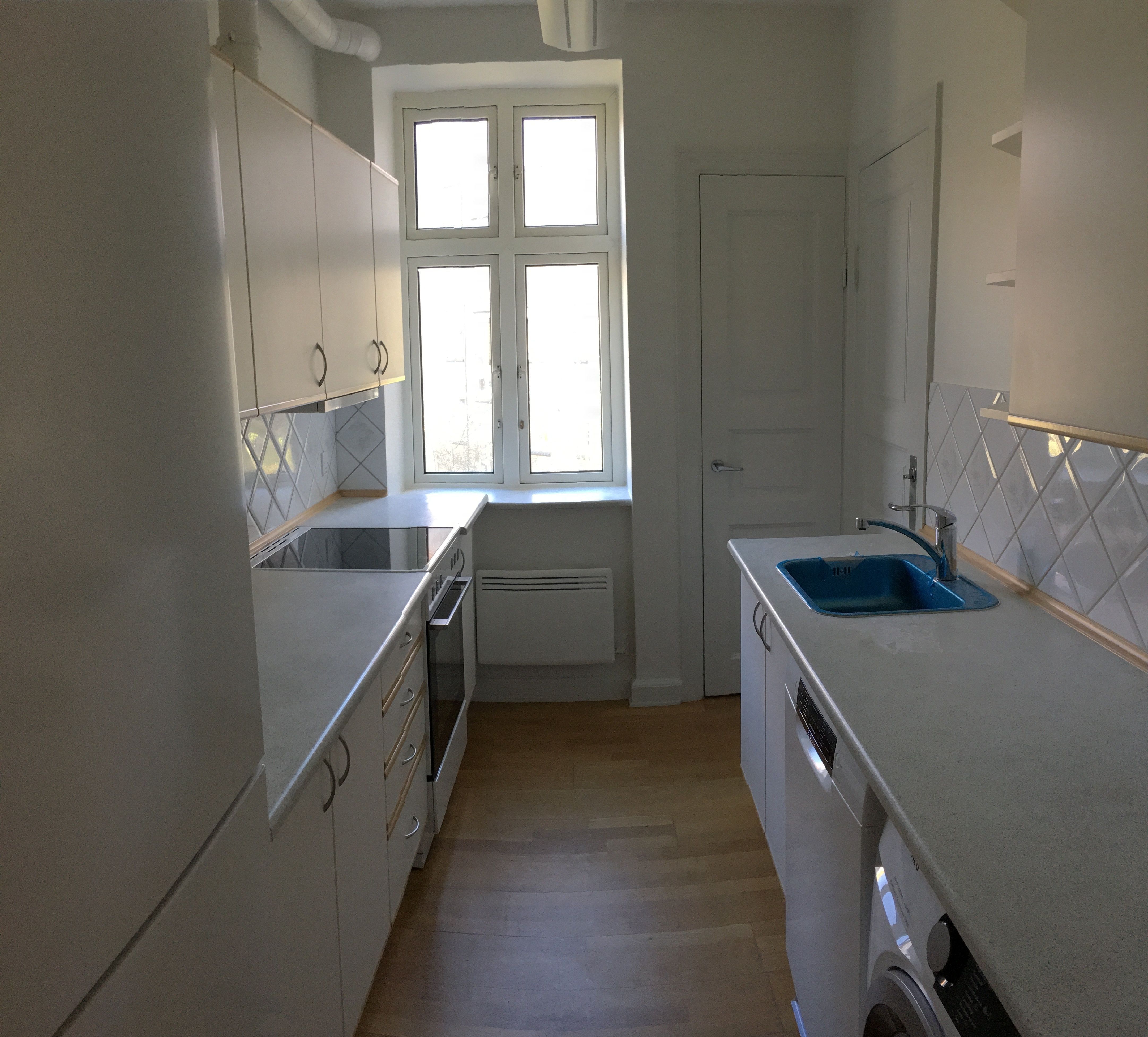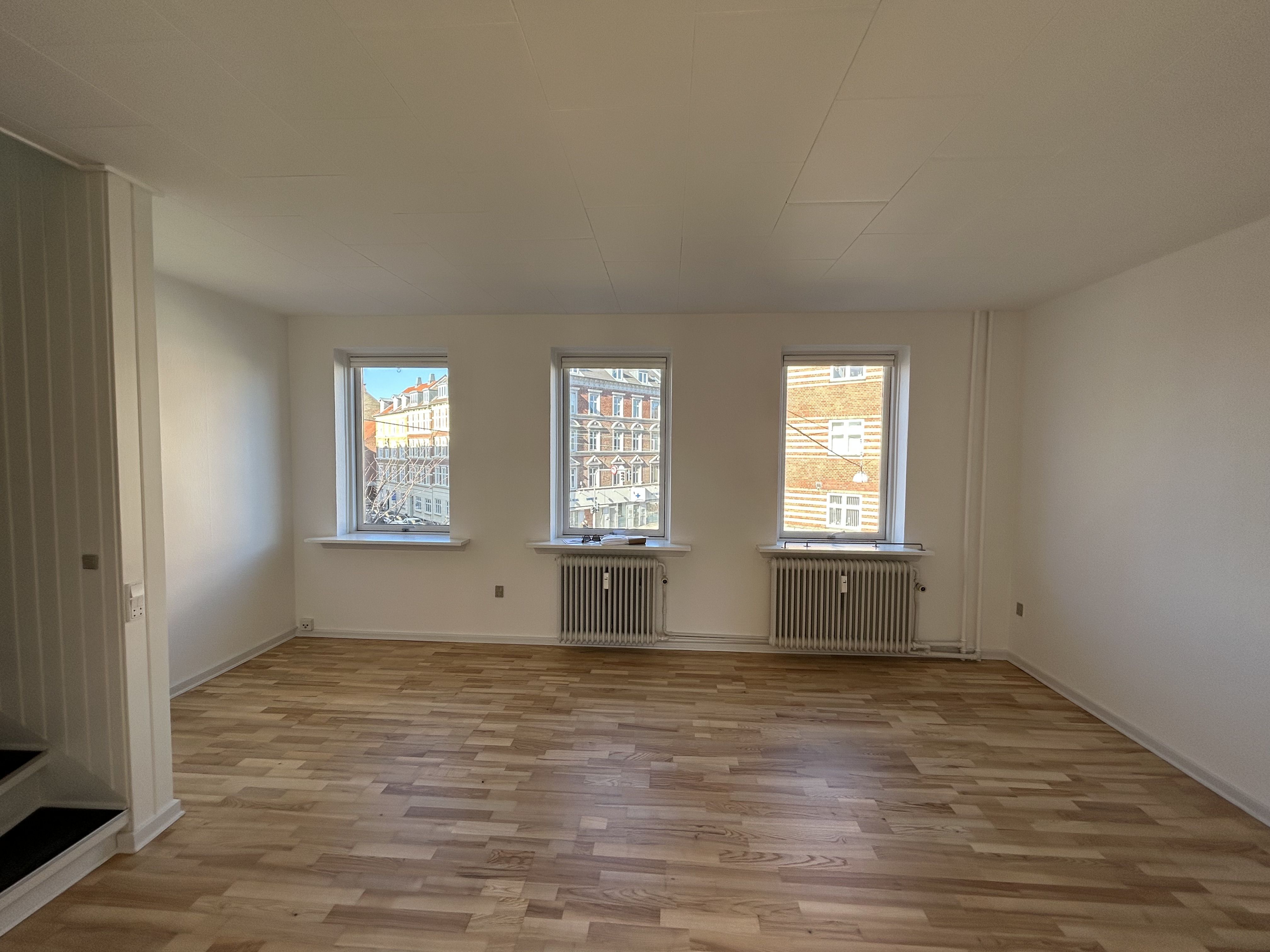 I denne meget charmerende lejlighed er der højt til loftet, smukke stukdetaljer og flotte trægulve. Køkkenet er i åben forbindelse med lejlighedens fordelingsgang, og det er derfor lyst og rummeligt. Køkkenet er derudover veludstyret med både opvaskemaskine, kølefryseskab, keramisk kogezone og ovn. Lejligheden byder på tre gode værelser, hvoraf to værelser er store med charmerende vinduer, der giver et godt lysindfald. Det tredje værelse er mindre og kan benyttes som for eksempel børneværelse eller kontor. Badeværelset er stort og lyst med en bruseniche.
