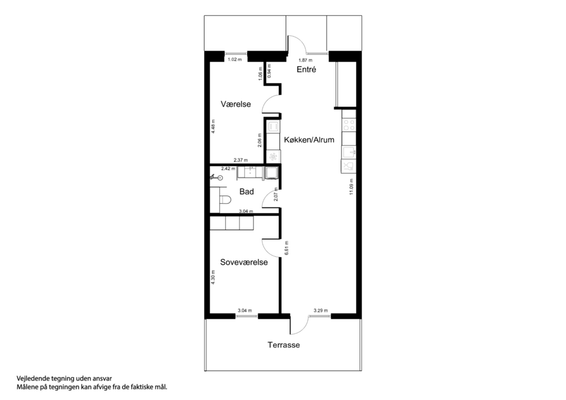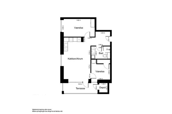 3 vær. lejlighed på 80 m²