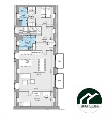 3 vær. lejlighed på 57 m²