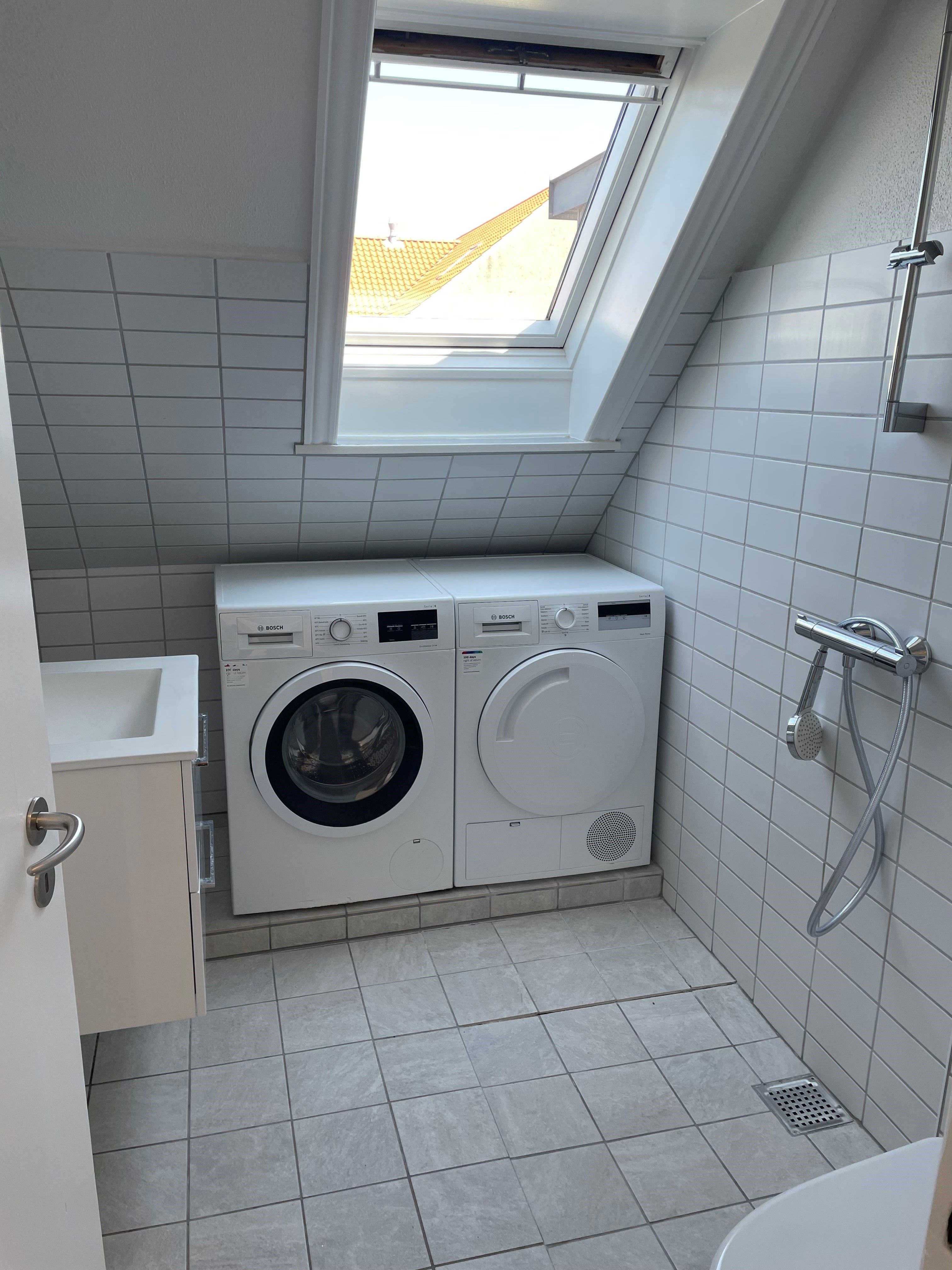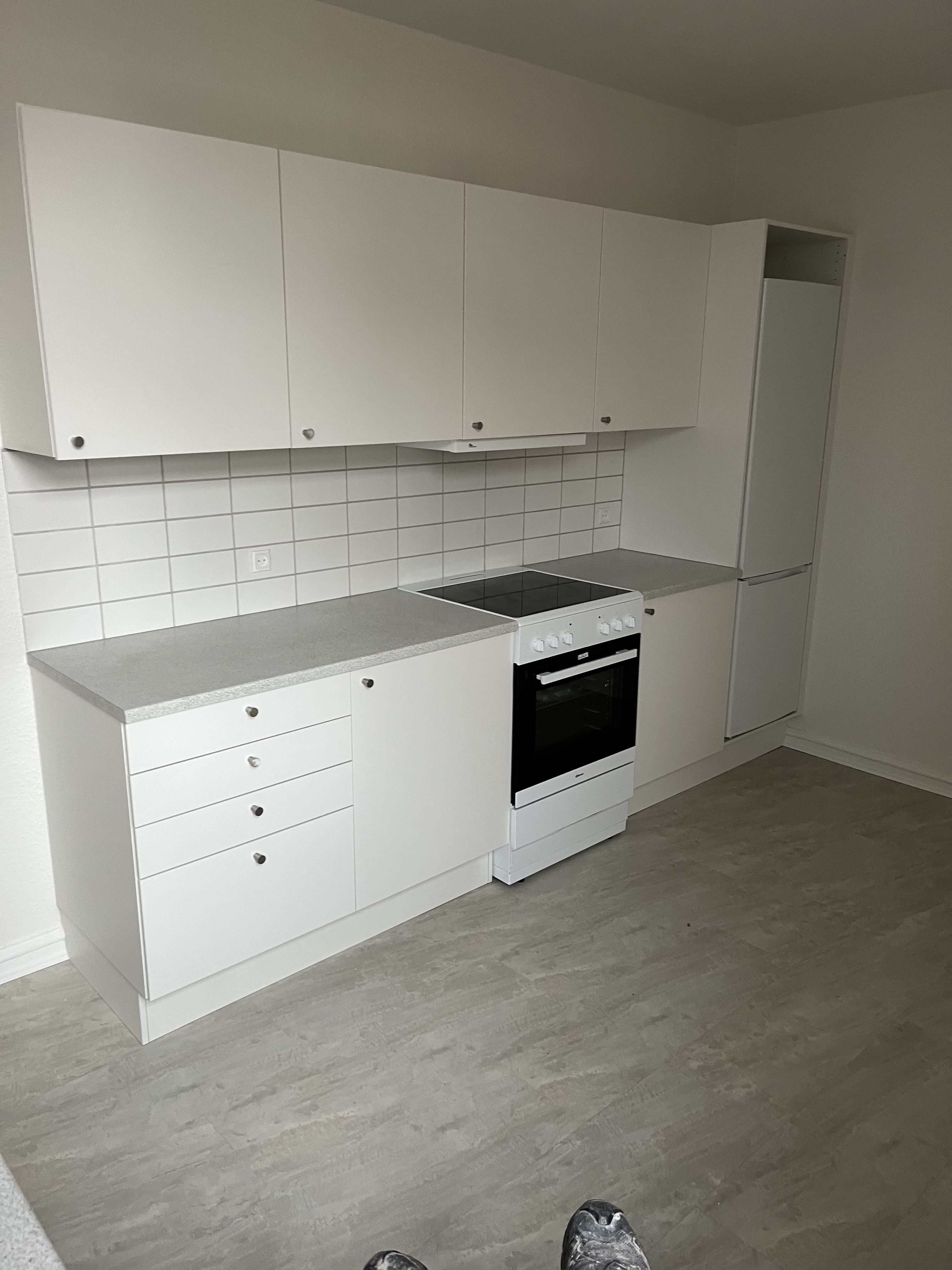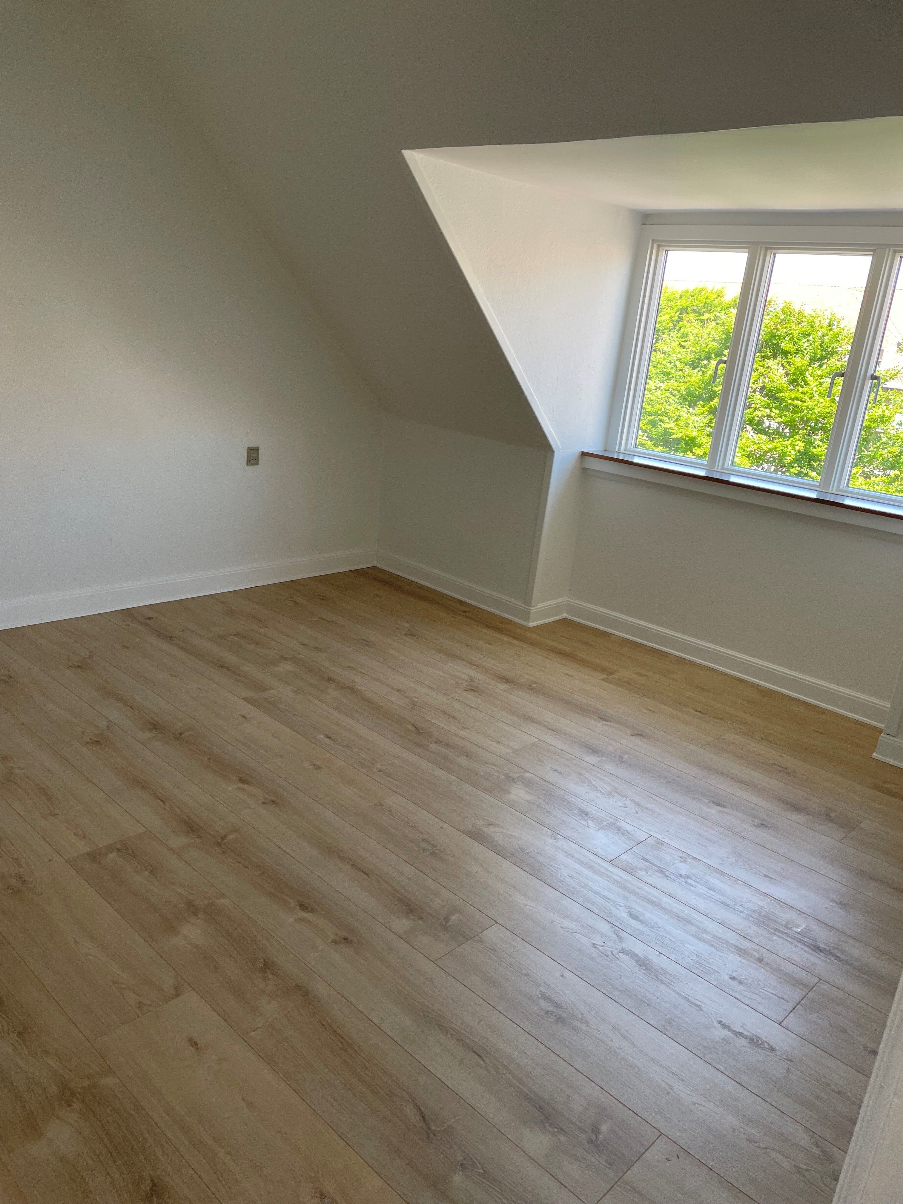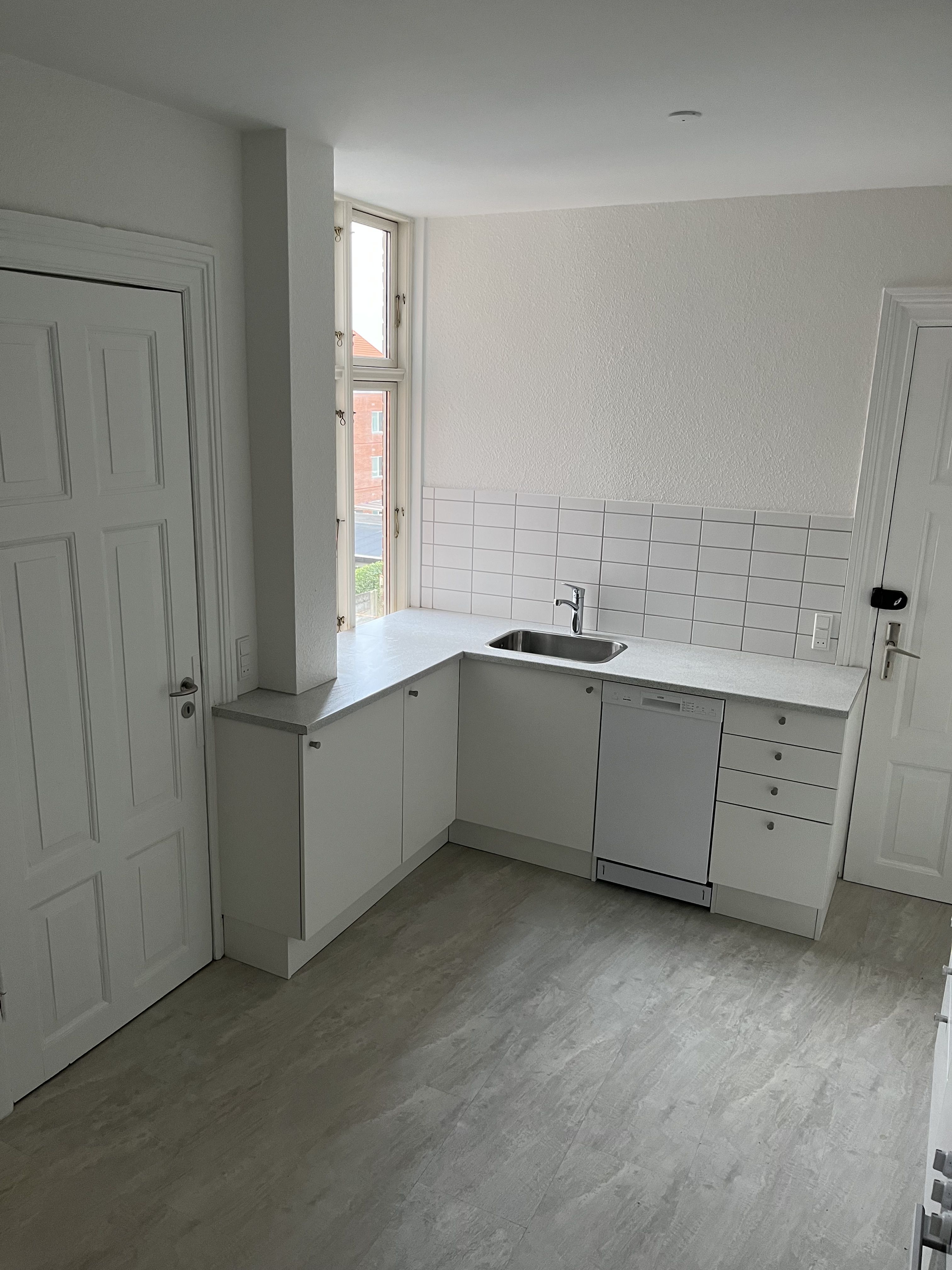 Lejligheden er lys og hyggelig med plankegulve i sæbebehandlet fyr.
