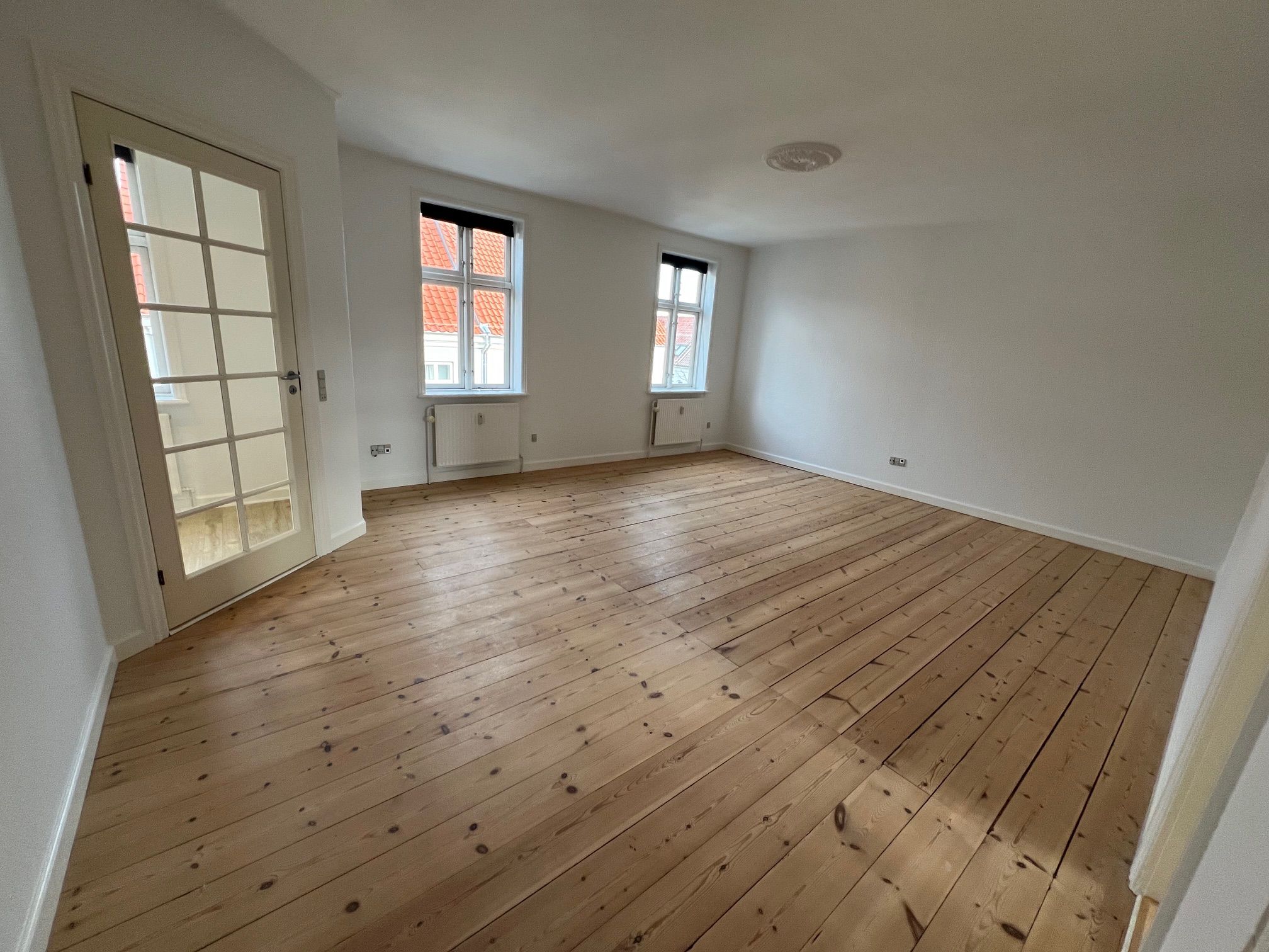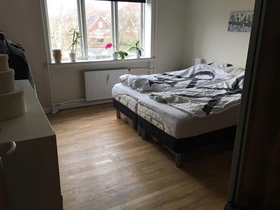 Dejlig renoveret lejlighed beliggende øverst på 2 sal. Nyere hvidt grebsfrit HTH køkken, med alt i hårde hvidevarer. Pæn stor stue med vinkel, entre, bad m.brus og nyt væghængt toilet, soveværelse og køkken. Fælles kælder m.mulighed for vask, samt eget kælderrum ca.4 m2 Der er stor fælles have, samt gratis parkering for beboere og evt. Gæsteparkering med kort. Få skridt fra gågade, banegård/bus, samt indkøbsmuligheder. Ingen husdyr tilladt.