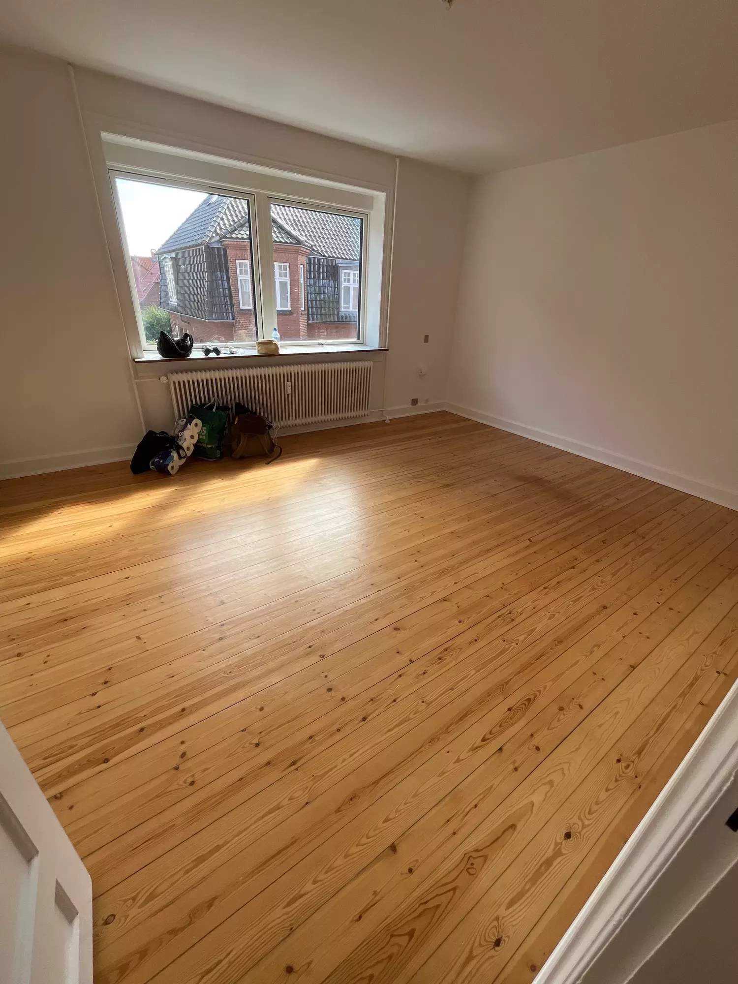 Lejligheden byder på en rummelig og lys stue med gode indretningsmuligheder, hvor der både er plads til sofaarrangement og spiseplads.