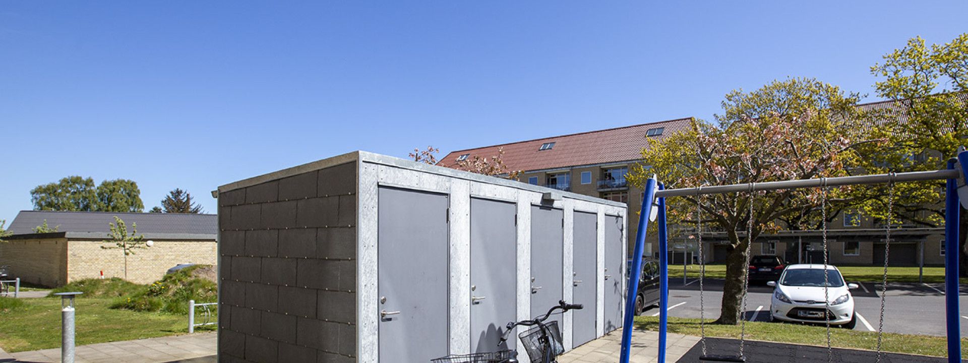 Fælles gårdmiljø med mulighed for at sidde og grille samt mulighed for at tilleje garage til bilen.