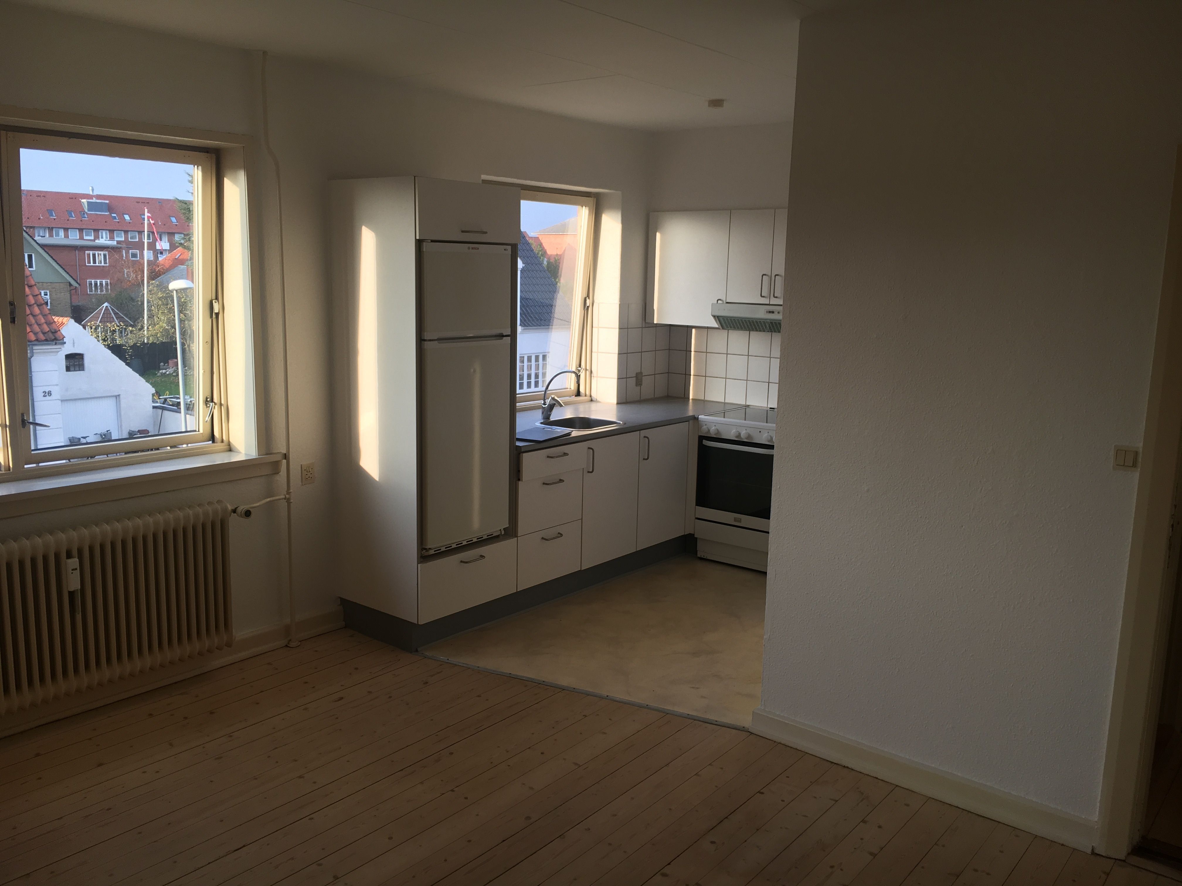 Lejemålet er beliggende på Vejlegade og består af 2 værelser samt køkken og bad. Lejemålet er 55 m2 og er klar til overtagelse snarest. Månedlig husleje er 3966 kr. og forudbetalt husleje og depositum beløber sig til i alt 8000 kr.