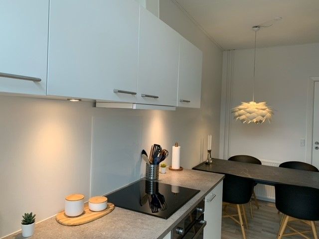 Drømmer du om en helt nyrenoveret lejlighed med stil, komfort og en fantastisk beliggenhed? Så er denne indflytningsklare 2-værelses lejlighed i hjertet af Frederikshavn et oplagt valg! Lejligheden byder på en skøn udsigt over både havn og by, som kan nydes fra de lyse og indbydende rum. Det moderne køkken ligger i åben forbindelse med stuen og er udstyret med helt nye hårde hvidevarer – her får du både opvaskemaskine, køle-/fryseskab, indbygningsovn og kogeplade i stilrent design. Det lækre badeværelse er også nyrenoveret og indeholder både vaskemaskine , så hverdagen bliver nem og bekvem. Overalt i lejligheden er der tænkt på detaljerne med indbygningsspots, flotte vandskurede vægge og synlige bjælker i stuen, som skaber en unik og eksklusiv atmosfære. Lejligheden er topisoleret og godt lydisoleret, hvilket sikrer en behagelig og rolig boligoplevelse. Derudover er der gulvvarme i alle rum, som giver ekstra komfort året rundt. Der medfølger P-kort til parkering i gården, hvilket gør det nemt og bekvemt i hverdagen. Lejligheden er attraktivt placeret på 2. sal. Vi søger en rolig og ansvarsbevidst lejer, der værdsætter et stille bomiljø og passer godt på boligen. En lejlighed der skal opleves – perfekt til dig, der ønsker kvalitet, komfort og central beliggenhed i ét!
